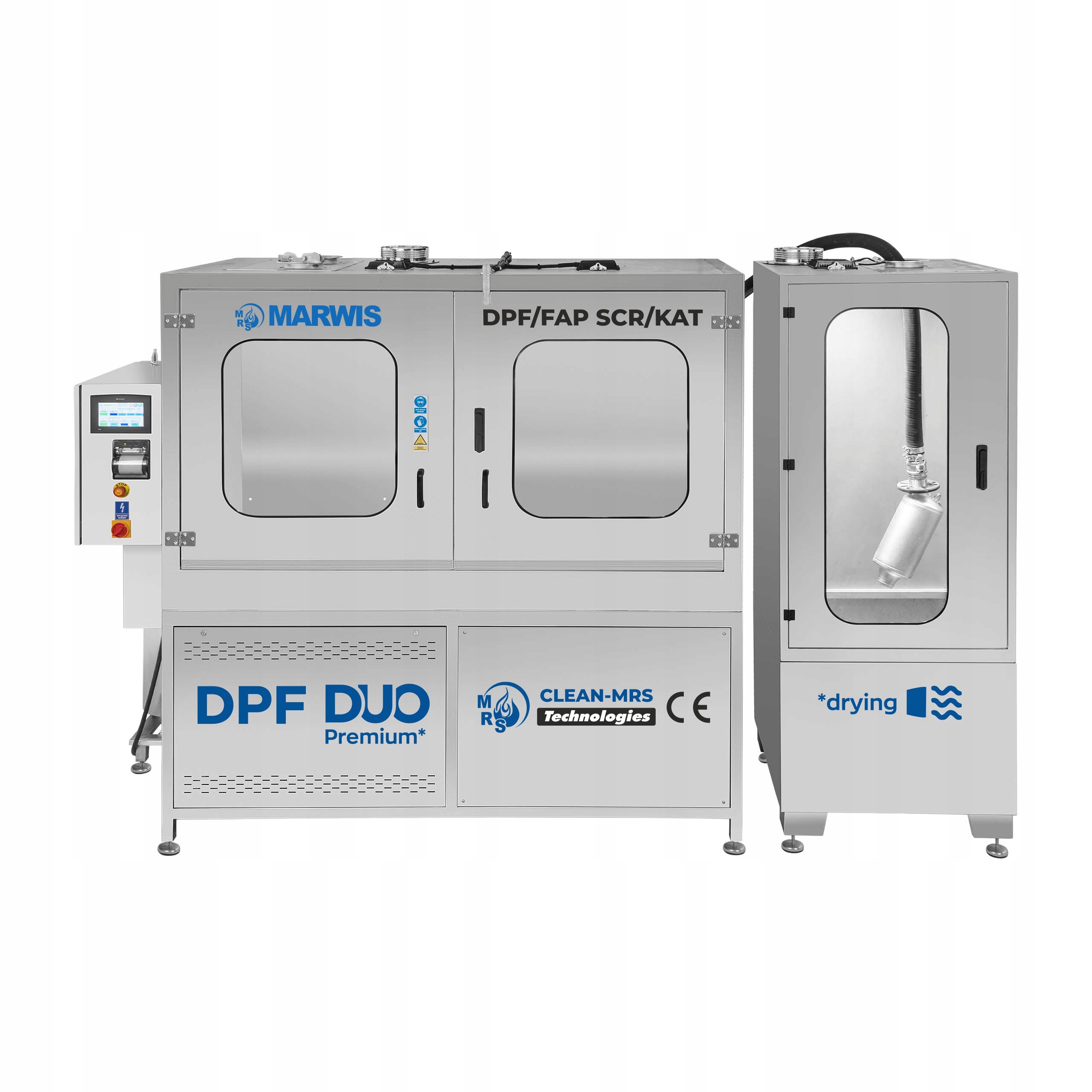 Після завершення процесу очищення пристрій сушить фільтр повітрям при температурі 90 градусів Цельсія, що забезпечує повне випаровування мийного розчину. Тут варто підкреслити надзвичайно важливу перевагу нашої машини – окрему сушильну машину. Це рішення було створено у відповідь на зростаючі вимоги клієнтів щодо ефективності. Відокремлення системи промивання від системи сушіння дозволяє запустити процес регенерації наступного фільтра під час сушіння DPF. Ця революційна модифікація збільшила ефективність машини майже вдвічі, а отже, термін окупності інвестицій значно скоротився. Після завершення сушіння вимірюється протитиск і потік. Таке вимірювання також можна виконати перед очищенням, що дасть змогу порівняти результати до та після процесу регенерації. Впроваджений принтер дозволяє роздрукувати протокол з обох вимірювань - це важливо, щоб кінцевий споживач міг побачити та порівняти досягнуті результати.