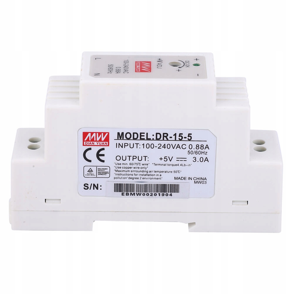 DR-15-5 БЛОК ЖИВЛЕННЯ НА DIN-РЕЙКУ 3A 15W 5V