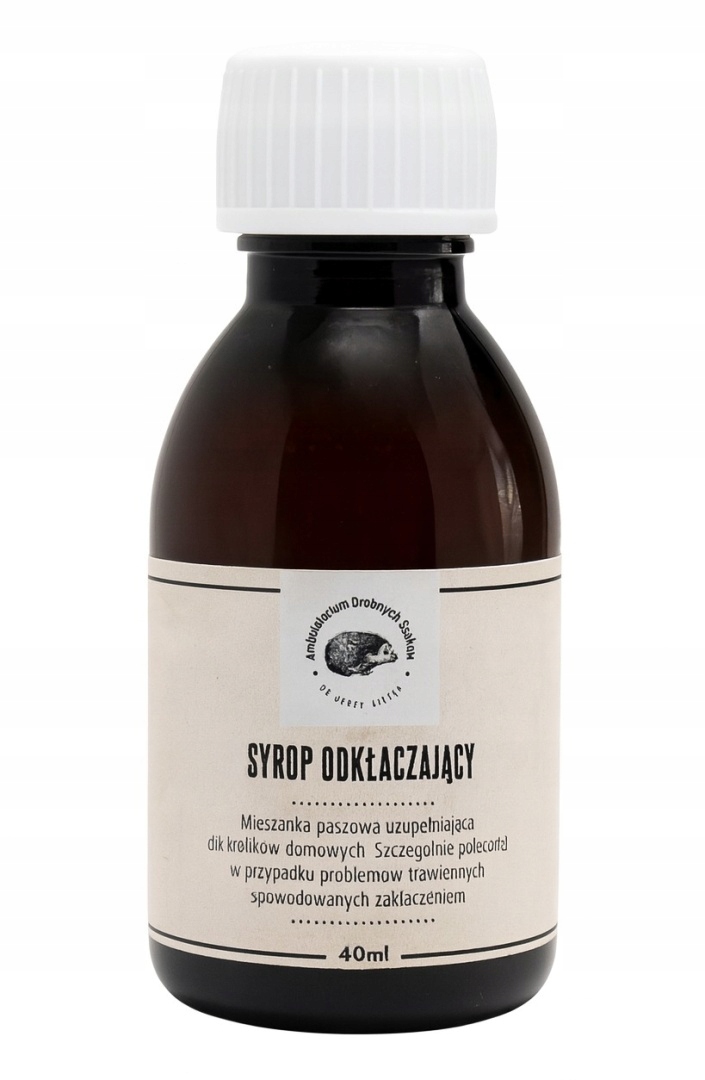 Знижуючий сироп із амбулаторії дрібних ссавців доктора Єжи Зентека – це професійний препарат, розроблений для кроликів і дрібних травоїдних ссавців, які піддаються утворенню пілобезоарів (волоссяних закупорок) у травному тракті. В основі продукту лежать натуральні рослинні інгредієнти, ферменти та слизові речовини, які підтримують правильне травлення та сприяють видаленню волосся з травної системи.