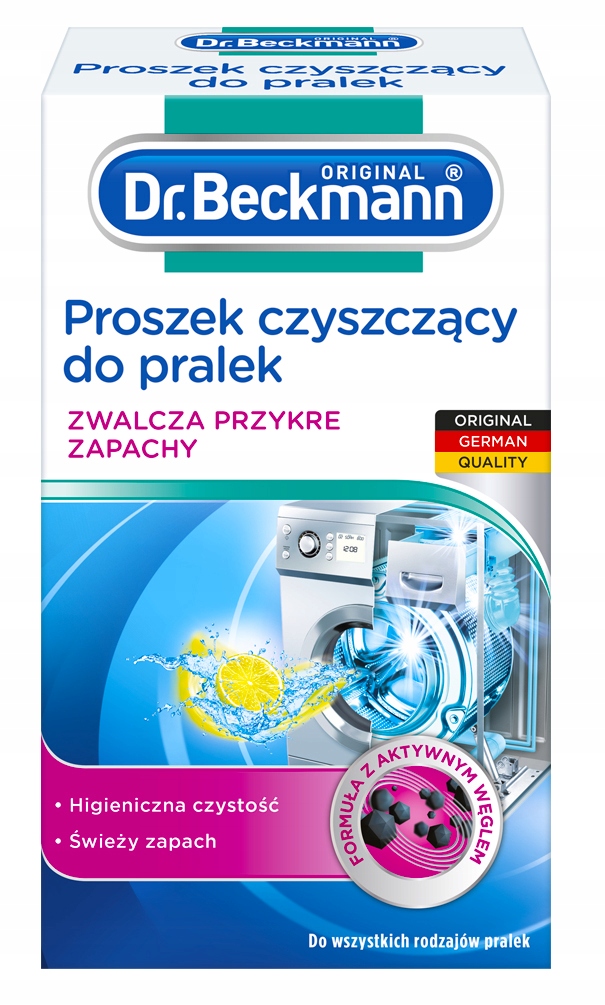 Чистячий порошок для пральних машин Dr. Beckmann ретельно очищає та усуває неприємні запахи в пральній машині завдяки спеціальній формулі, яка забезпечує ідеальну свіжість. Ваша пральна машина більше не буде пахнути, а білизна знову стане свіжою.