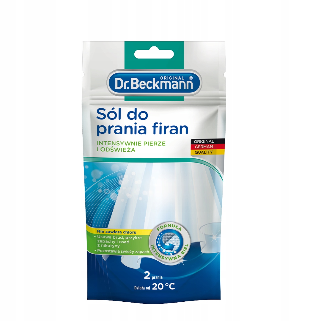 Доктор. Сіль для прання штор Beckmann ефективно видаляє стійкий пил, плями жиру та нікотину, а також неприємні запахи. Формула насиченого білого кольору підвищує ефективність усіх миючих засобів, тому немає необхідності використовувати спеціальний миючий засіб.