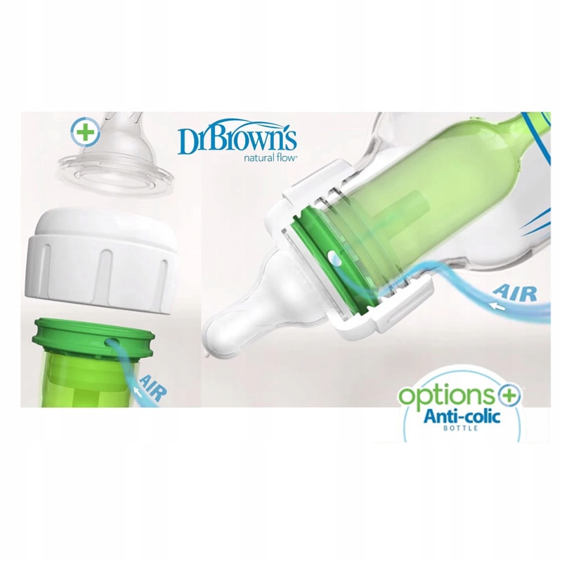 Запатентована вентиляційна система дозволяє годувати дитину за допомогою пляшечки Dr Brown's із вентиляційною системою або без неї - залежно від дитини потреби, уподобання чи вік.