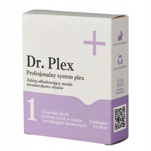 Dr. Plex Професійна система Plex складається з фази 1 - відновлення дисульфідних містків і фази 2 - посилення ефекту фази 1. Вона призначена для використання до, після і під час хімічних обробок. Ці препарати відновлюють дисульфідні містки та заповнюють дефіцит кератину. Докторський набір Plex Professional Plex System регенерує волокна волосся, підвищує їх еластичність і запобігає повторному погіршенню стану. Пасма набувають еластичність, перестають ламатися, кришитися і сіктися.