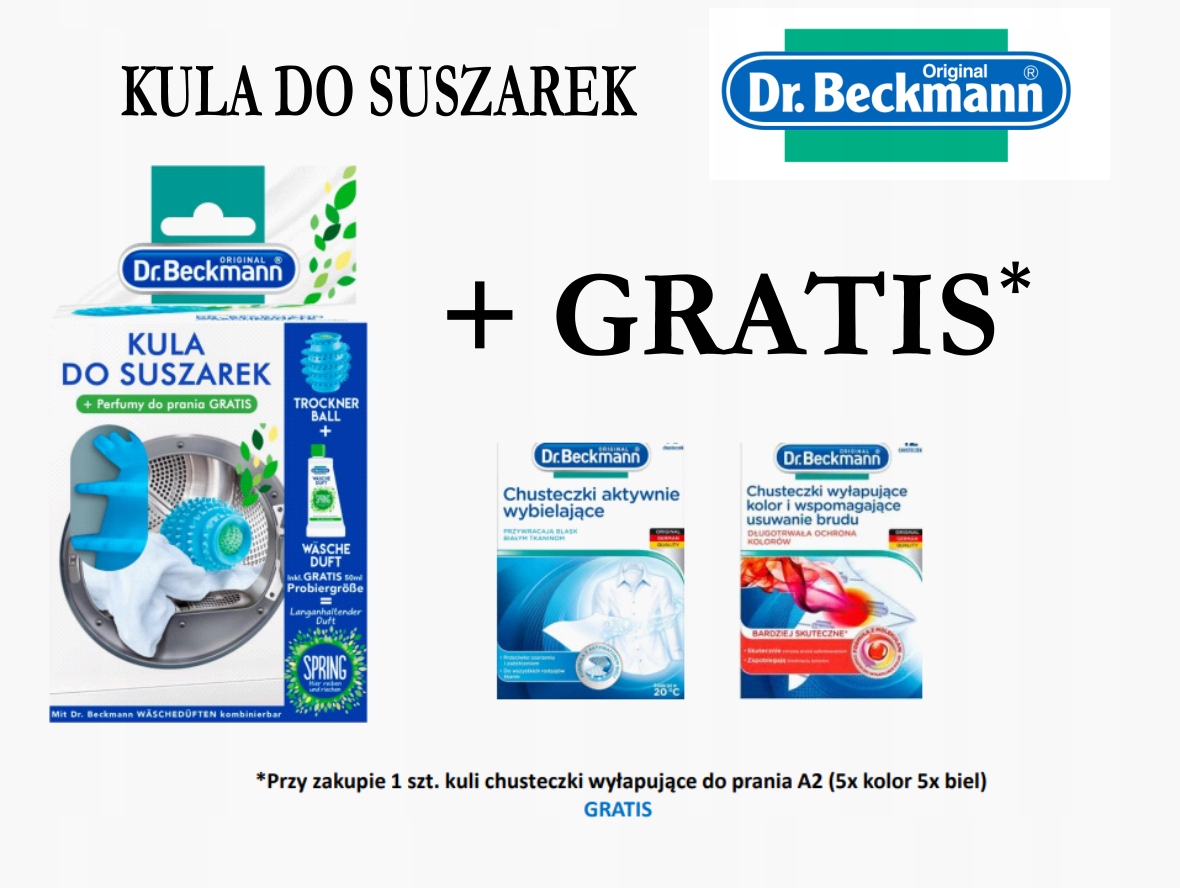 Dr Beckmann Trockner Ball – куля для сушильних машин. Його особлива конструкція дозволяє точно та рівномірно розподілити парфуми для прання по тканині. Спеціально профільовані кулькові наконечники піднімають волокна тканини, підвищуючи їх пухнастість і ніжність. Вони запобігають злипанню тканин під час сушіння, що скорочує час висихання та підвищує ефективність сушіння тканини.