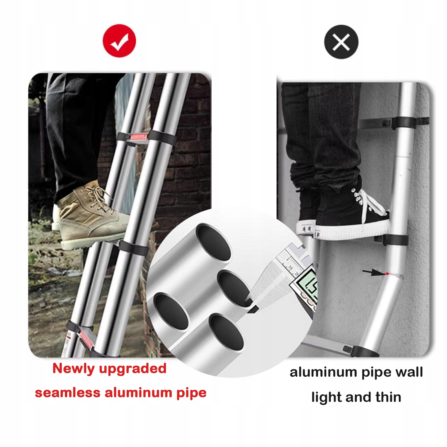 - Телескопічна драбина преміум-класу з алюмінієвої А-рами має несучу здатність, міцна та стійка до руйнування.