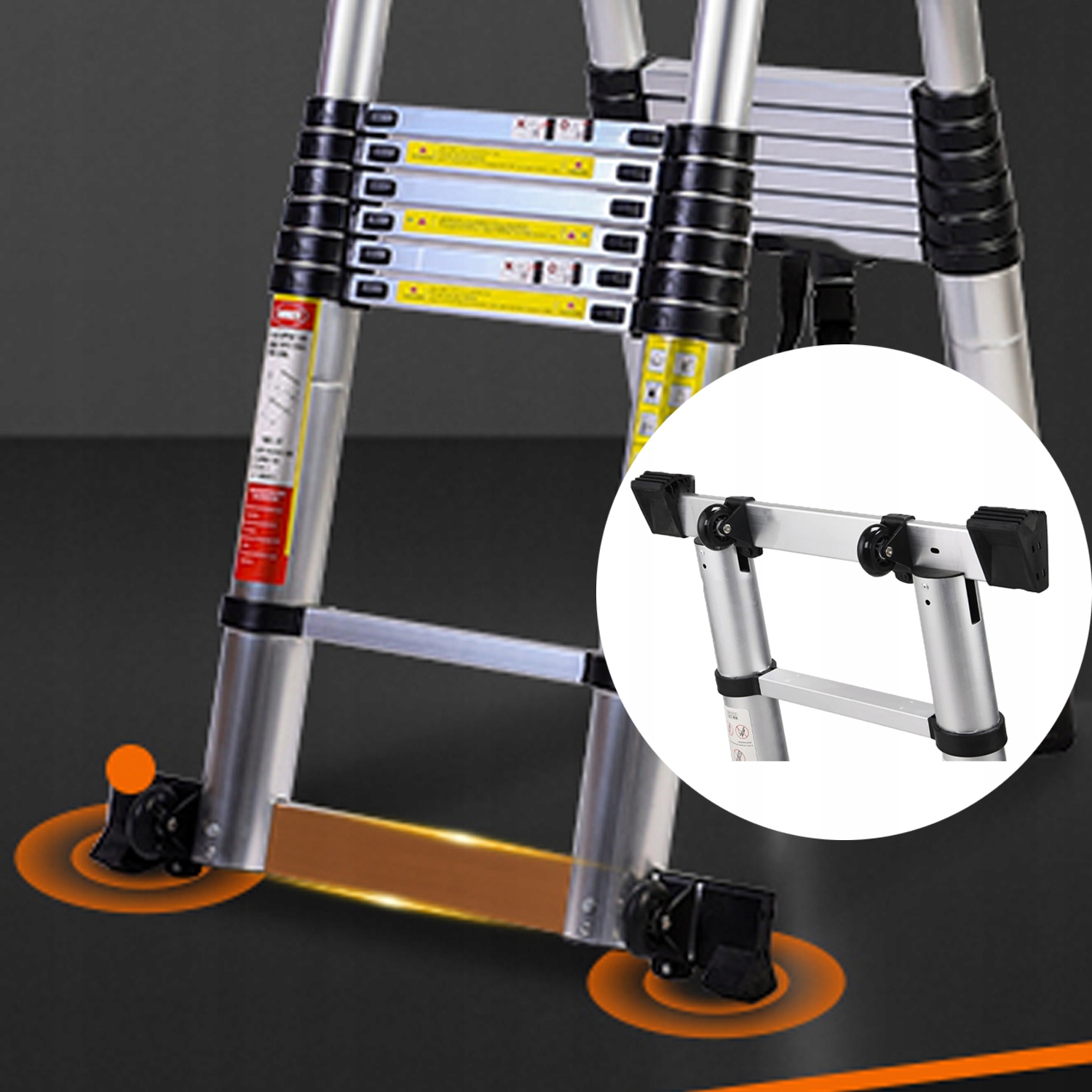 Телескопічна драбина A-frame оснащена потовщеною нековзкою гумовою прокладкою та балансуючими накладками для забезпечення безпеки під час використання.