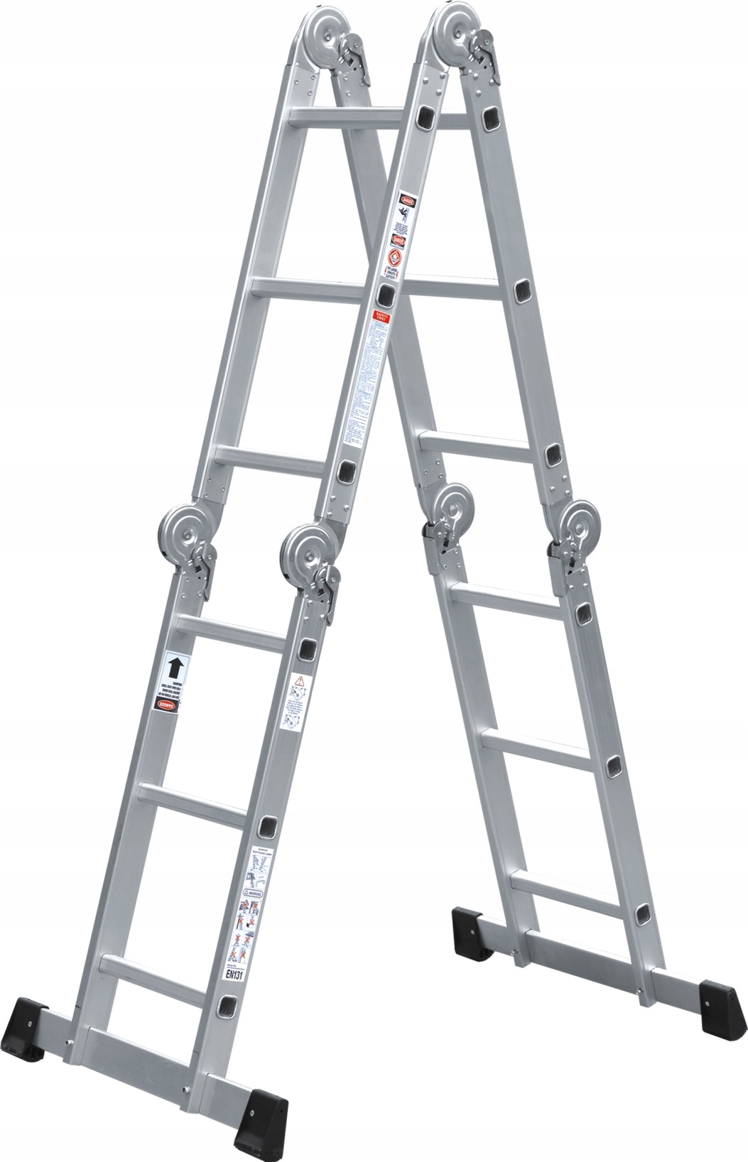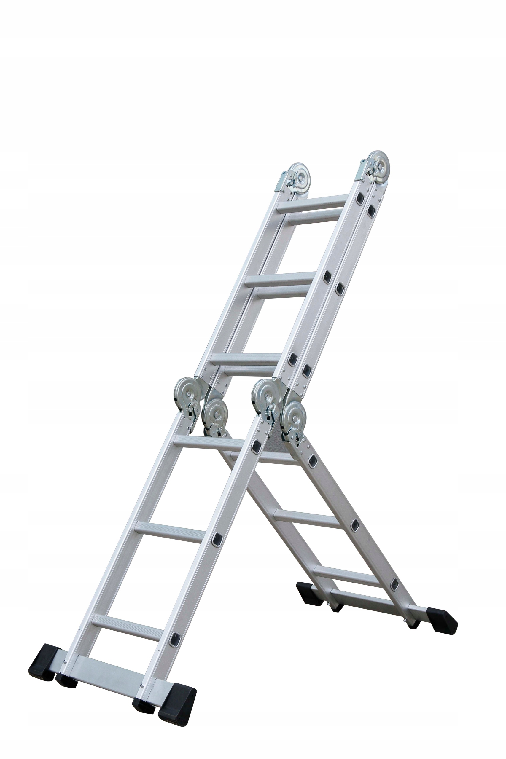 Драбина 4x3 є найпопулярнішою моделлю на ринку.Це універсальна драбина, яку можна використовувати як робочу платформу, окремо стоячу драбину та як похила драбина. Має дуже високу адаптивність. Найбільшими перевагами драбини є її багатофункціональність і невеликий розмір у складеному вигляді.