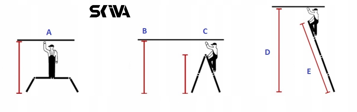 Пам’ятайте, що «робоча висота» означає приблизну висоту, до якої ви можете безпечно дістатися з драбини. Це перевірені, середні значення, прийняті більшістю виробників сходів.