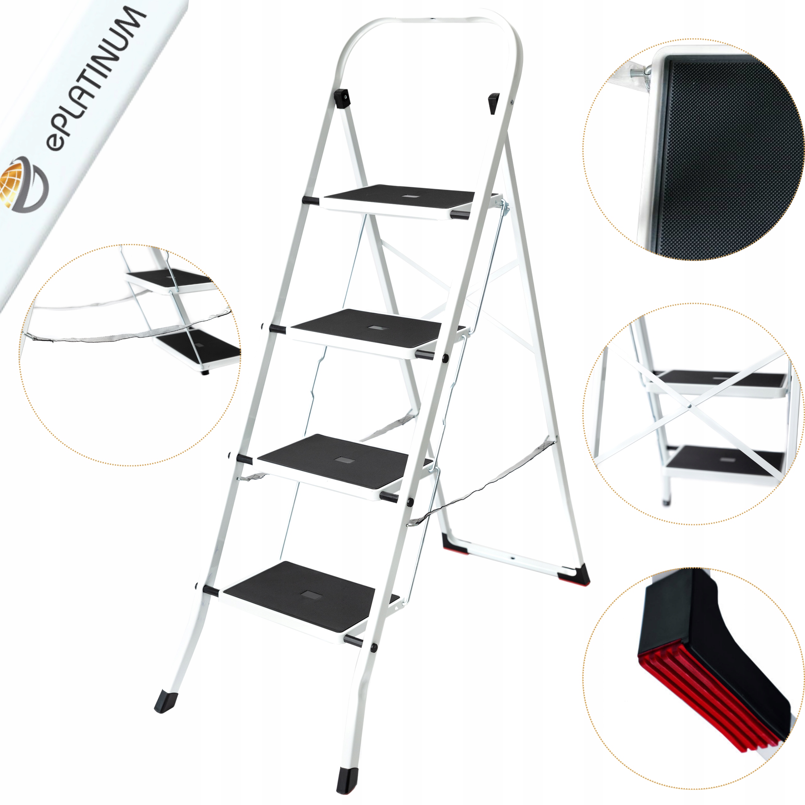 ДРАБИНА ДОМАШНЯ ДРАБИНКА 4СТУПІНЧАСТА РОЗКЛАДНА СТАЛЕВА 150кг МІЦНА БІЛА