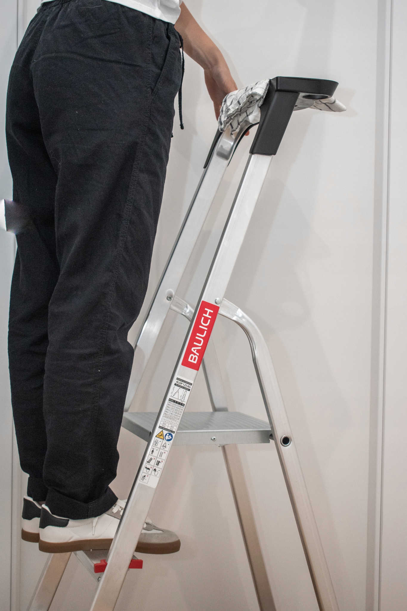 Крім того, наша 6-ступенева драбина займає мало місця в складеному стані, що полегшує її транспортування та < b >зберіганняв будь-якому кутку будинку. Обирайте функціональністьі комфорт для повсякденної роботи!