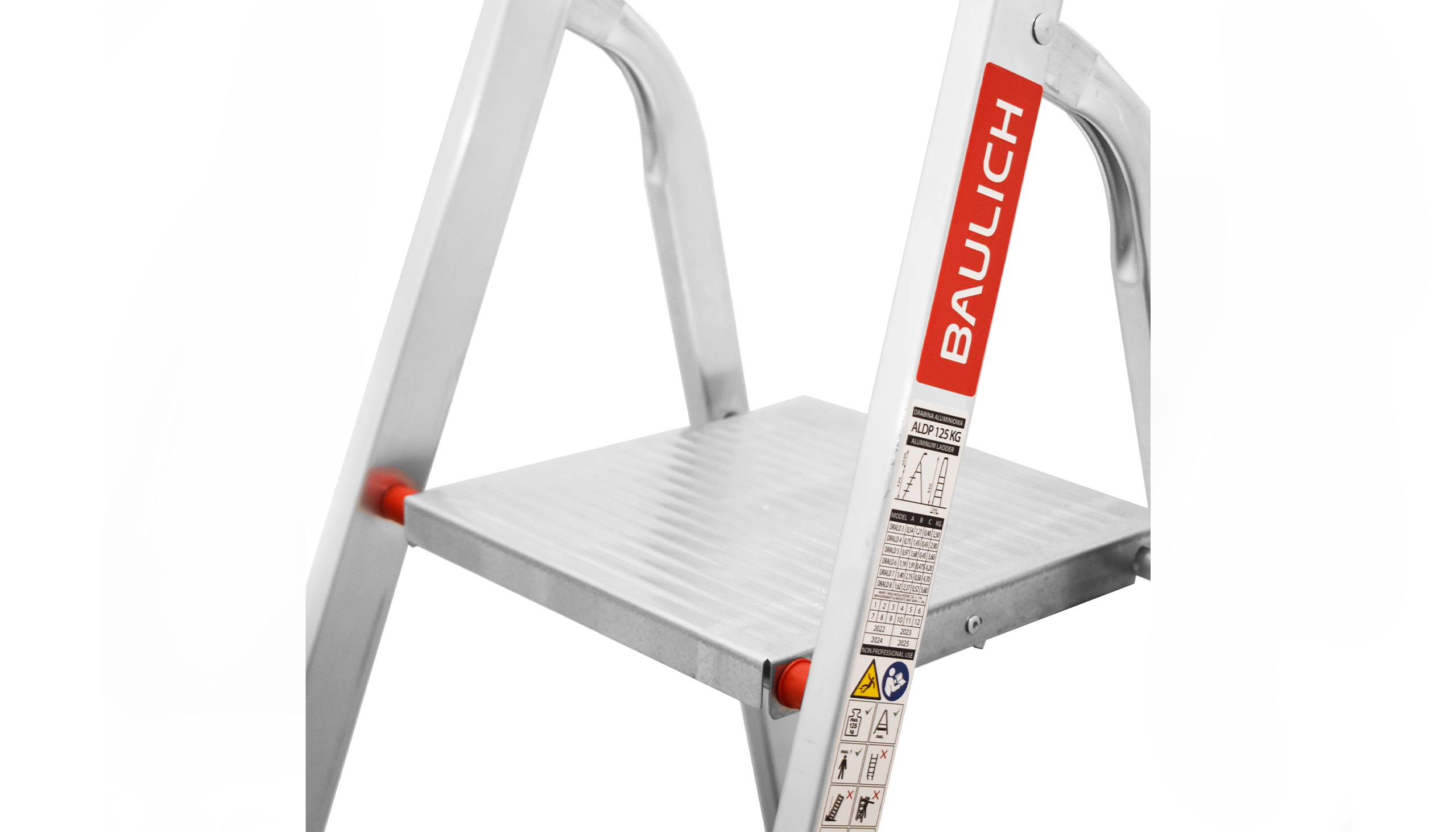 Ніжки інтенсивного червоного кольору мають ретельний профіль, щоб ідеально прилягати до землі та створювати стабільну основу. Крім того, вони захищають підлогу від подряпин і пошкоджень, що робить наші драбини ідеальним вибором для будь-яких видів робіт, як у приміщенні, так і на вулиці.