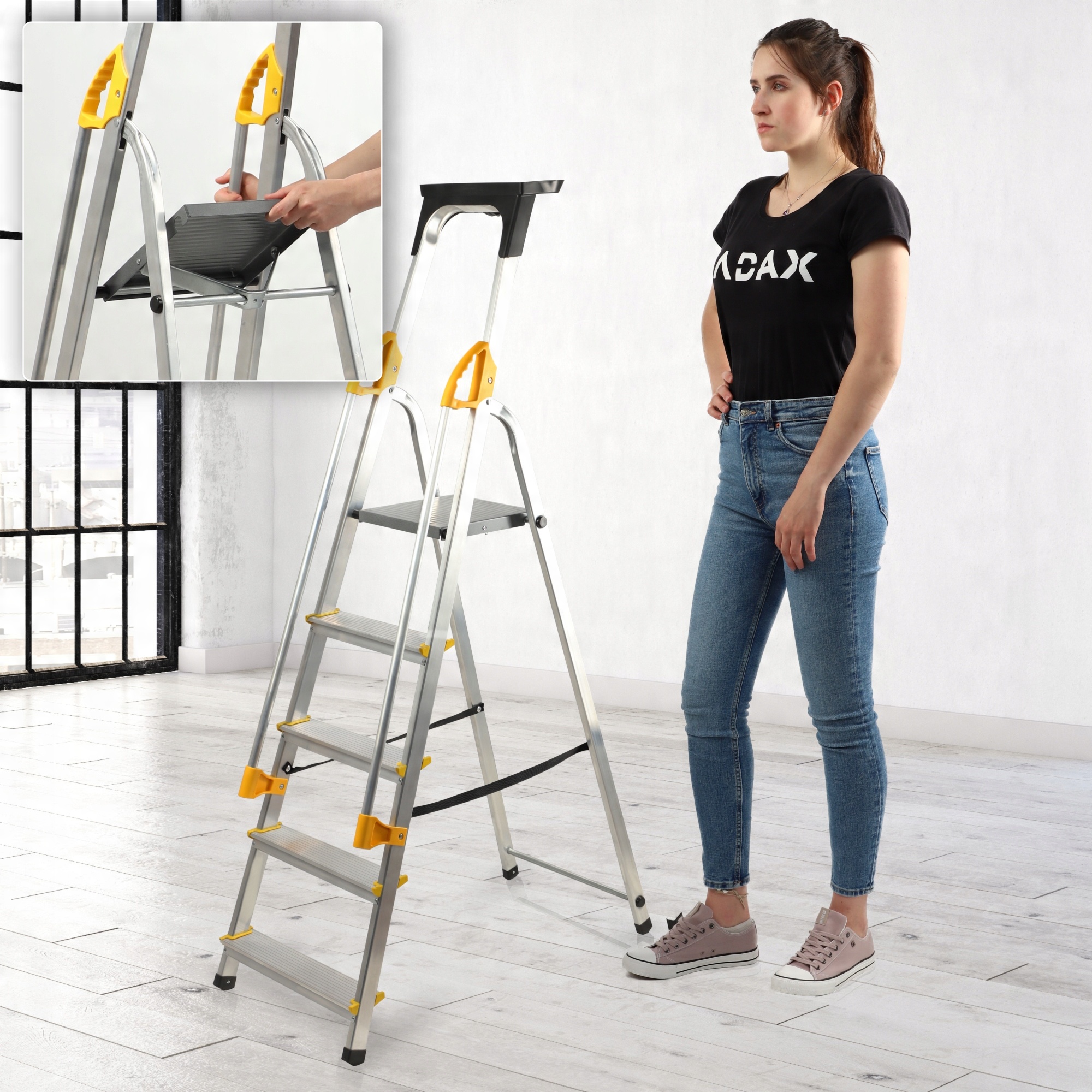КАДАКС АЛЮМІНІЄВА ДОМАШНЯ ДРАБИНА 5 СТРОБІНКІВ + ПОРУЧНІ