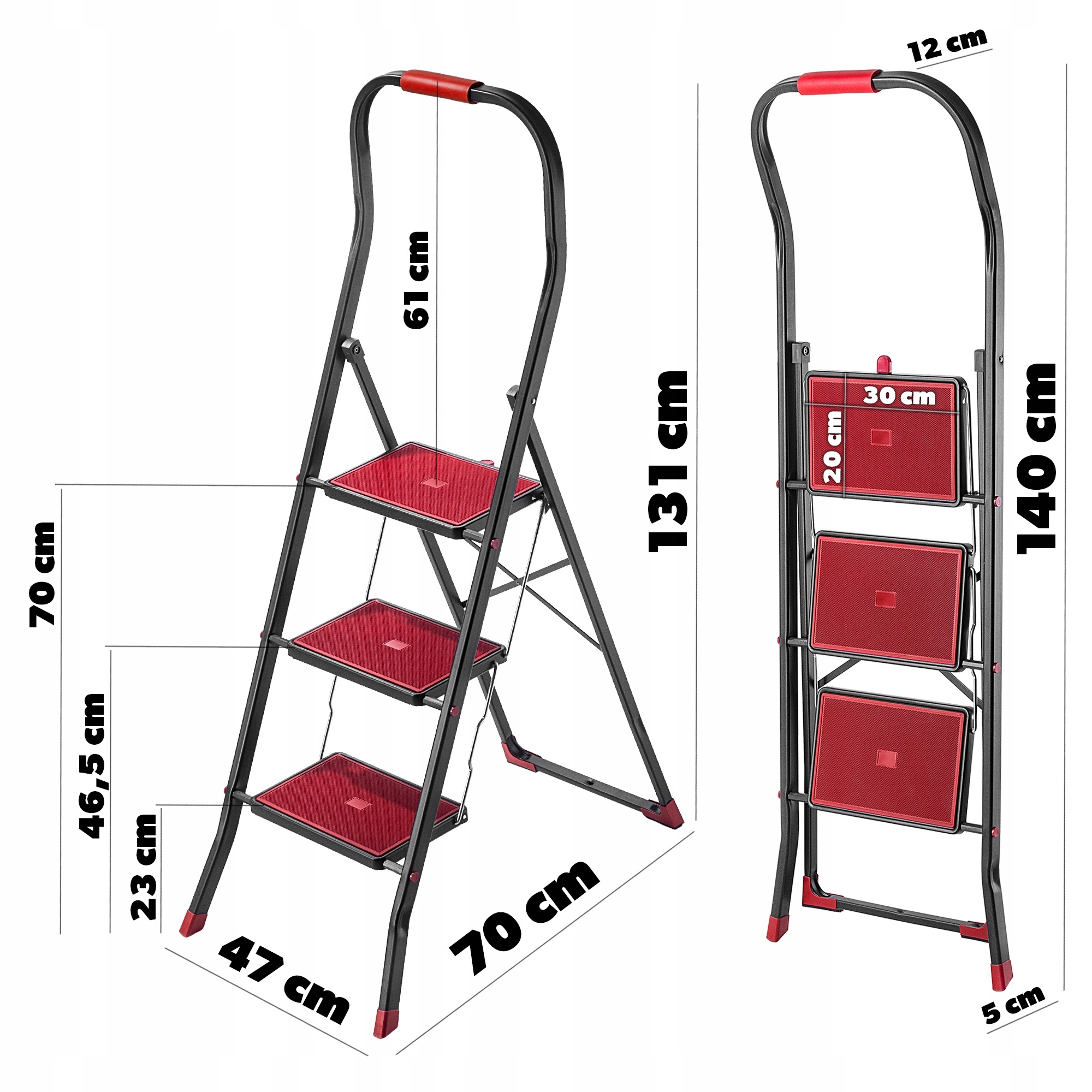 Виріб можна використовувати як для звичайної роботи по дому та у дворі, так і для випадкового ремонту. Він виготовлений зі сталі з порошковим покриттям, тому вологість не вплине негативно на його якість. Крім того, сталеві сходи можуть стати обладнанням не тільки для вашого будинку, але і для невеликої майстерні, офісного приміщення або закладу громадського харчування. Він легко витримує навантаження до 150 кг! Перевірте, чому варто мати його завжди під рукою!