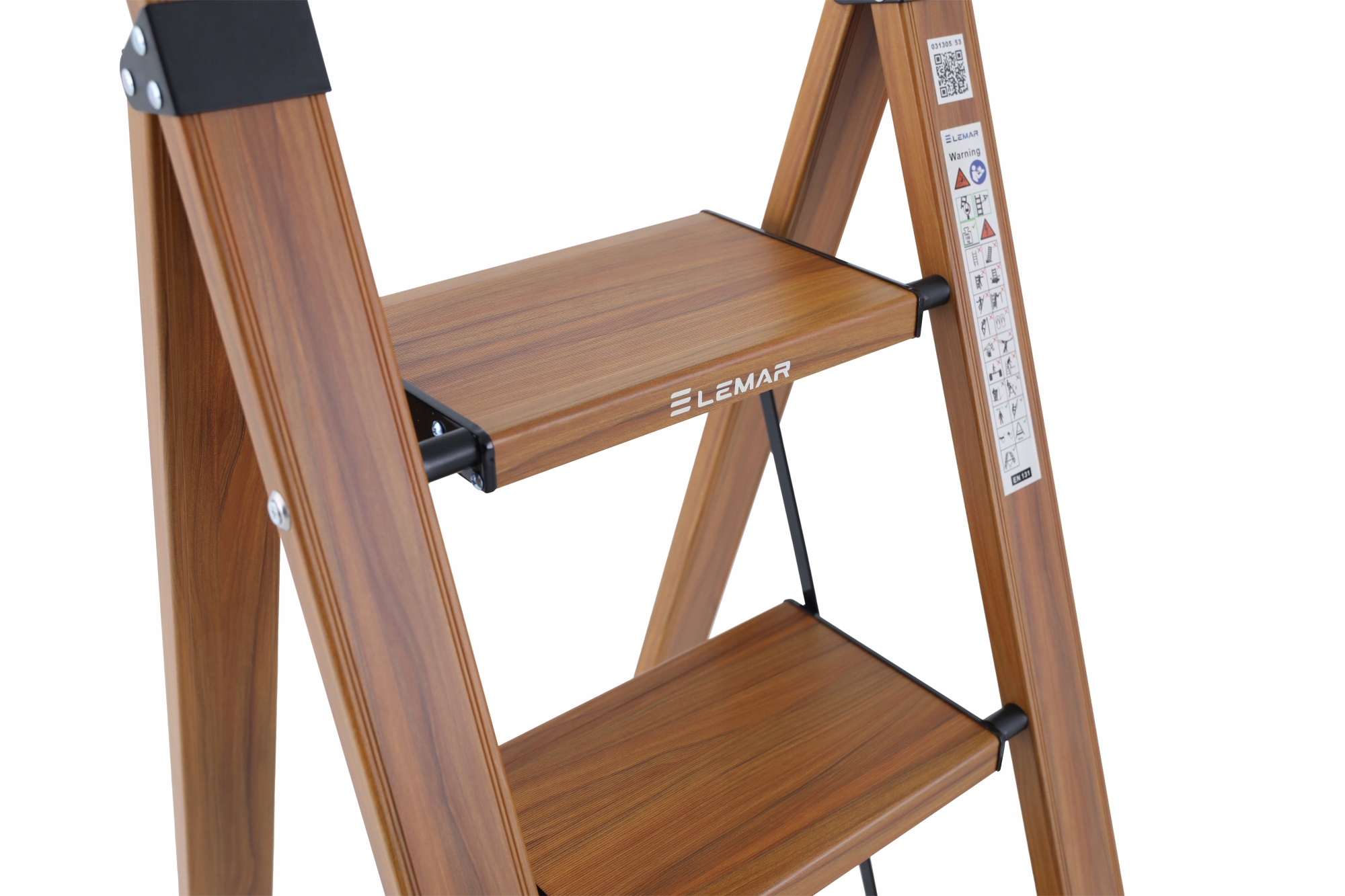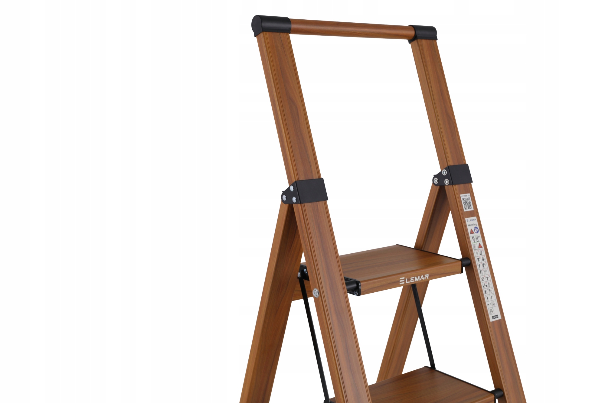 Драбина домашня алюмінієва, розкладна, 4 сходинки, дерево LEMAR, Slim Space