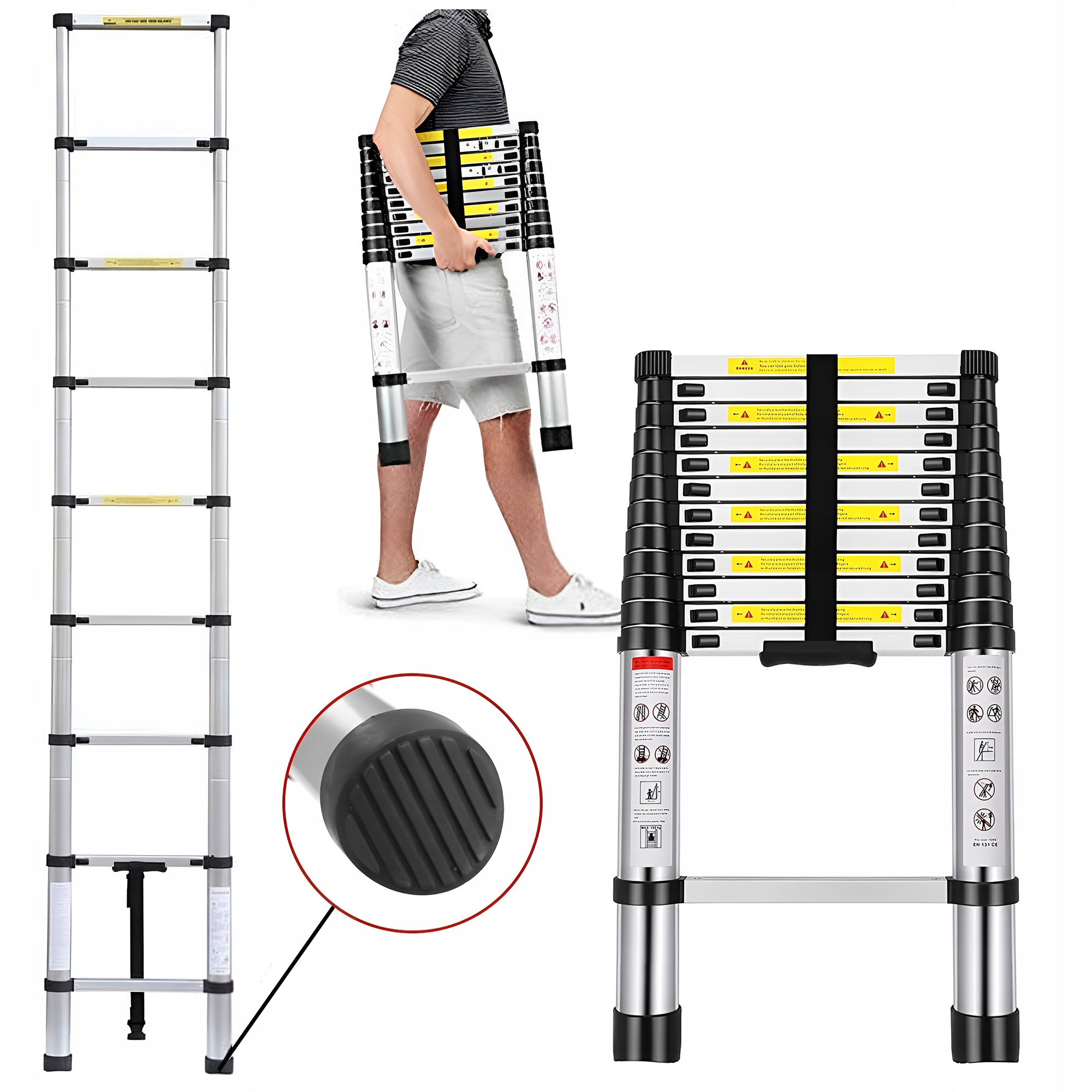 ⭐Телескопічна драбина StandHeiz 500 см — це міцна алюмінієва конструкція з вражаючими можливостями. Він легко досягає 500 см у висоту, а в складеному вигляді займає всього 95 см місця. Має 13 сходинок з відстанню 40 см, що гарантує комфорт і безпеку. Ідеально підходить для будівництва, ремонту або садових робіт. Зручний, стійкий і компактний, він відмінно працює в різних умовах.