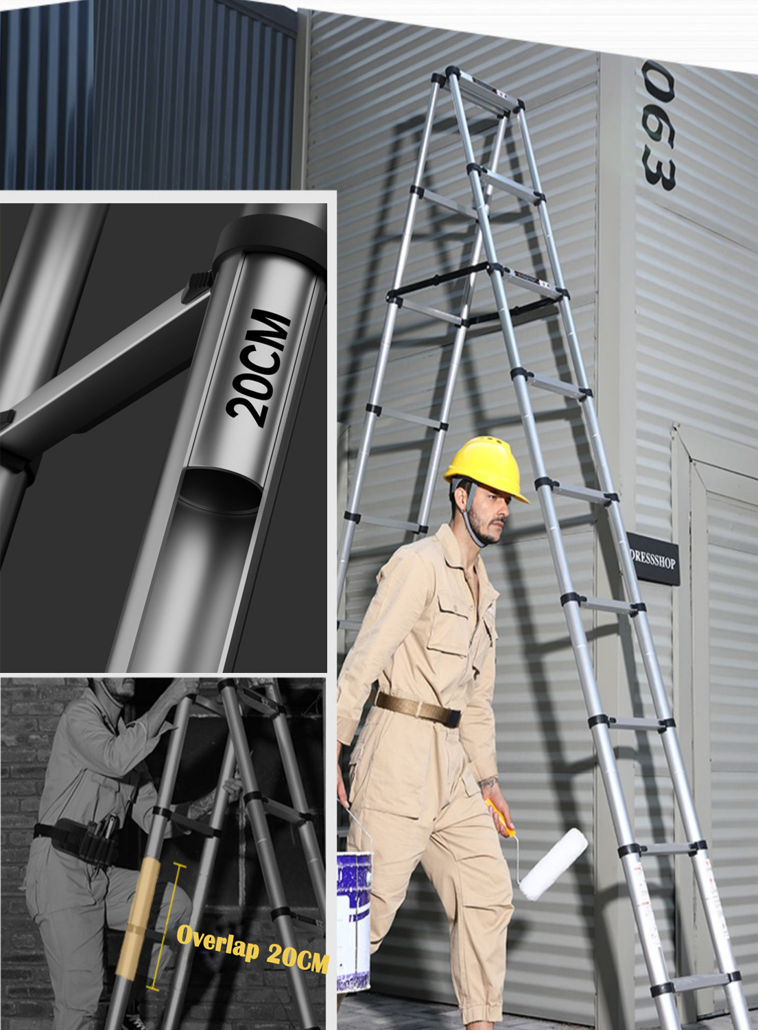 ✔ ✔ ✔ висувна конструкція драбини, наприклад, вудка, може бути телескопічною, легкою, маленькою, складеною, складеною та обмеженою для перенесення та зберігання, може зберігатися в шафі, під шафою, за умови або в багажнику автомобіля, в основному не відноситься до місця.