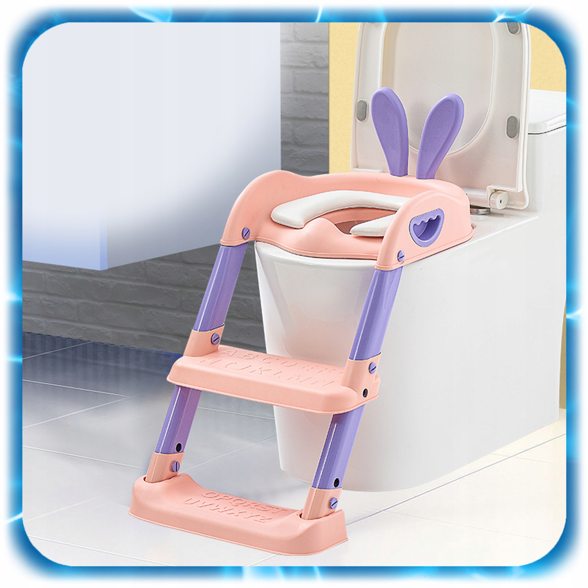 смішний вигляд, кролики та дружні кольори. що дитина охоче використовує туалет.