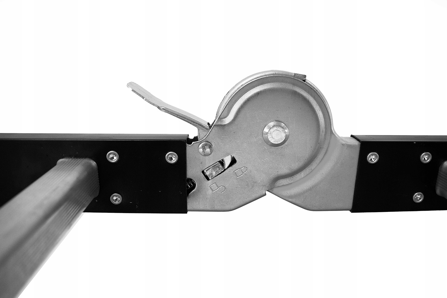 Наша драбина має два стабілізатори розміром 62x17 мм з протиковзкими ніжками, які зменшують ризик ковзання. Ніжки прикріплені заклепками, а стабілізатори прикріплені до драбини за допомогою гвинтів і самоконтряться гайок, що забезпечує виняткову стабільність і безпеку.