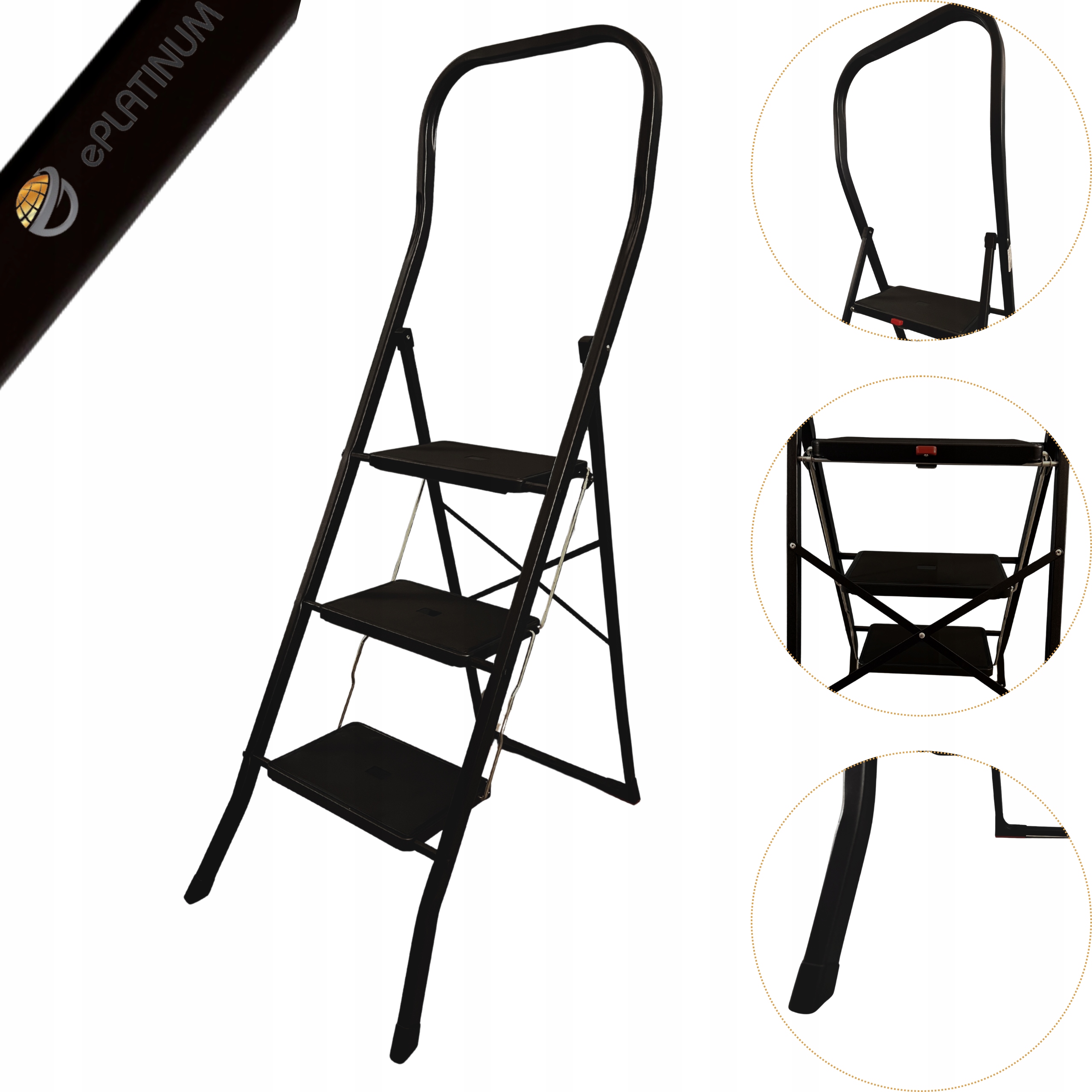 ДРАБИНКА ДЛЯ КУХНІ ЧОРНА ДОМАШНЯ ЛОФТ ЛЕГКА РОЗКЛАДНА ДРАБИНА 3ГРАДУСИ