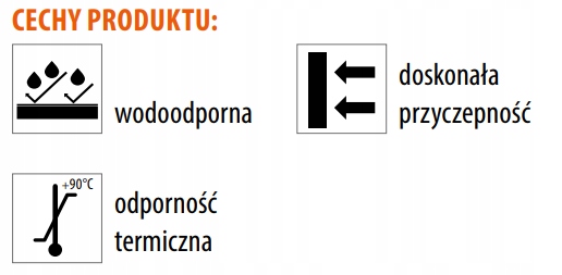 і гнучкістю, а також високою стійкістю до води, бензину, жиру та масла. Добре переносить короткочасний вплив високих температур до +90°C.