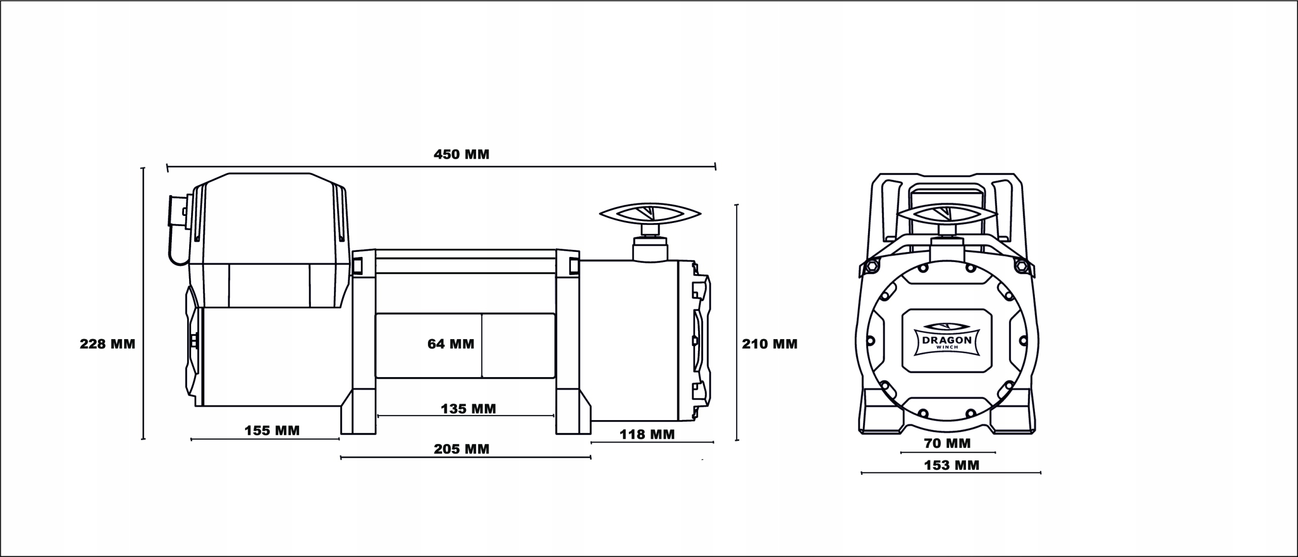 - Розміри лебідки (ДxШxВ): 450 мм x 159 мм x 256 мм li>