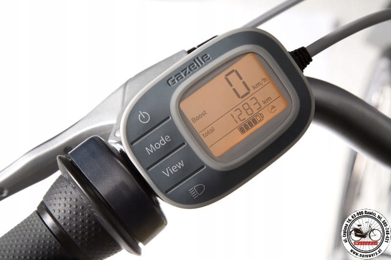 Панель управління електровелосипедами Gazelle Innergy серії Plus. Дисплей світиться оранжевим, коли освітлення велосипеда ввімкнено. На дисплеї відображаються такі функції: швидкість, відстань, середня відстань, загальна відстань. Цей контролер можна використовувати як взаємозамінний для велосипедів із серії Innergy Pure (фото 2).