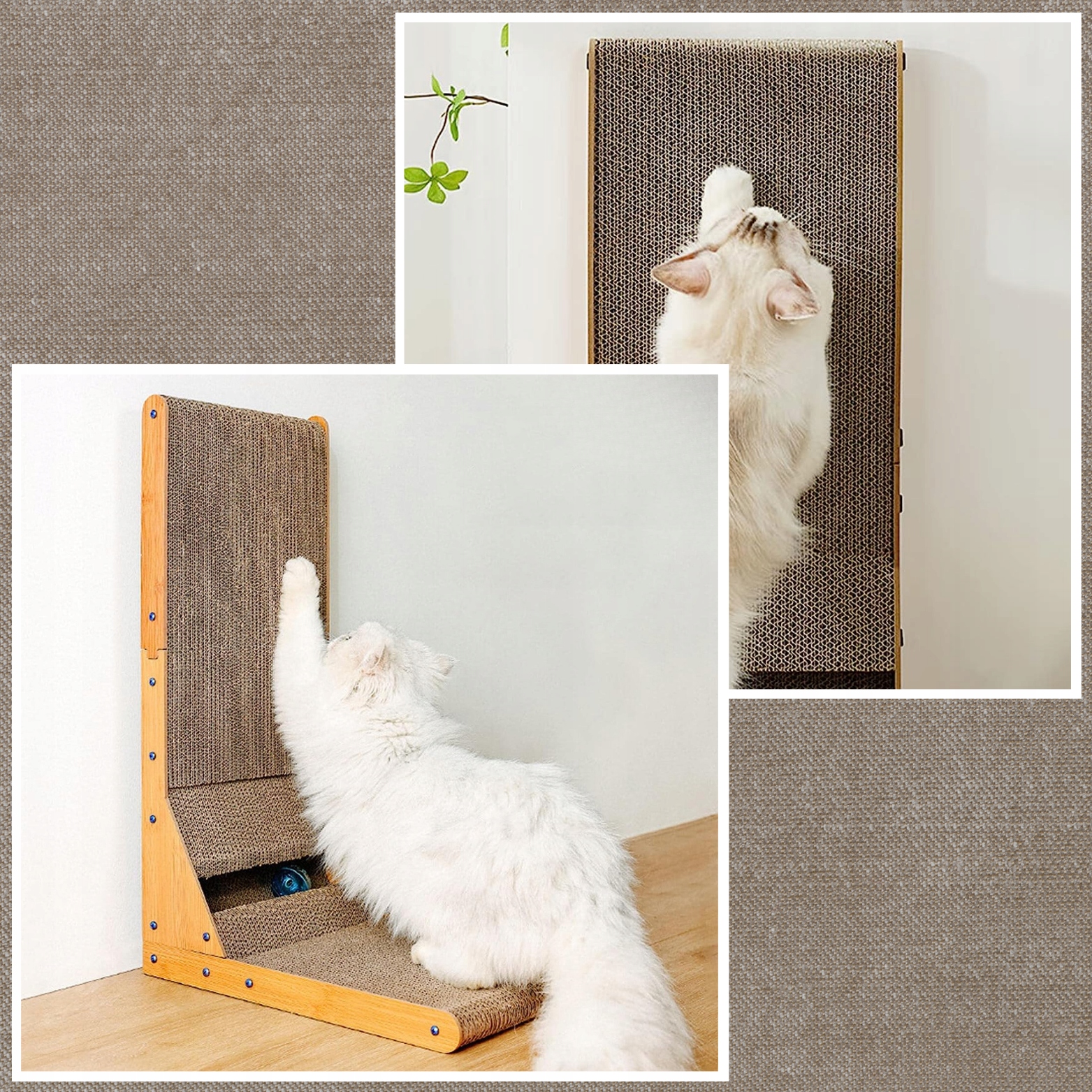 Кутова дряпка забезпечує функціональність 2 в 1, дозволяючи вашій кішці дряпати як горизонтально, так і вертикально. Це універсальне рішення, яке адаптується до природних звичок чесання вашої кішки, надаючи вашій кішці більше різноманітності та задоволення.