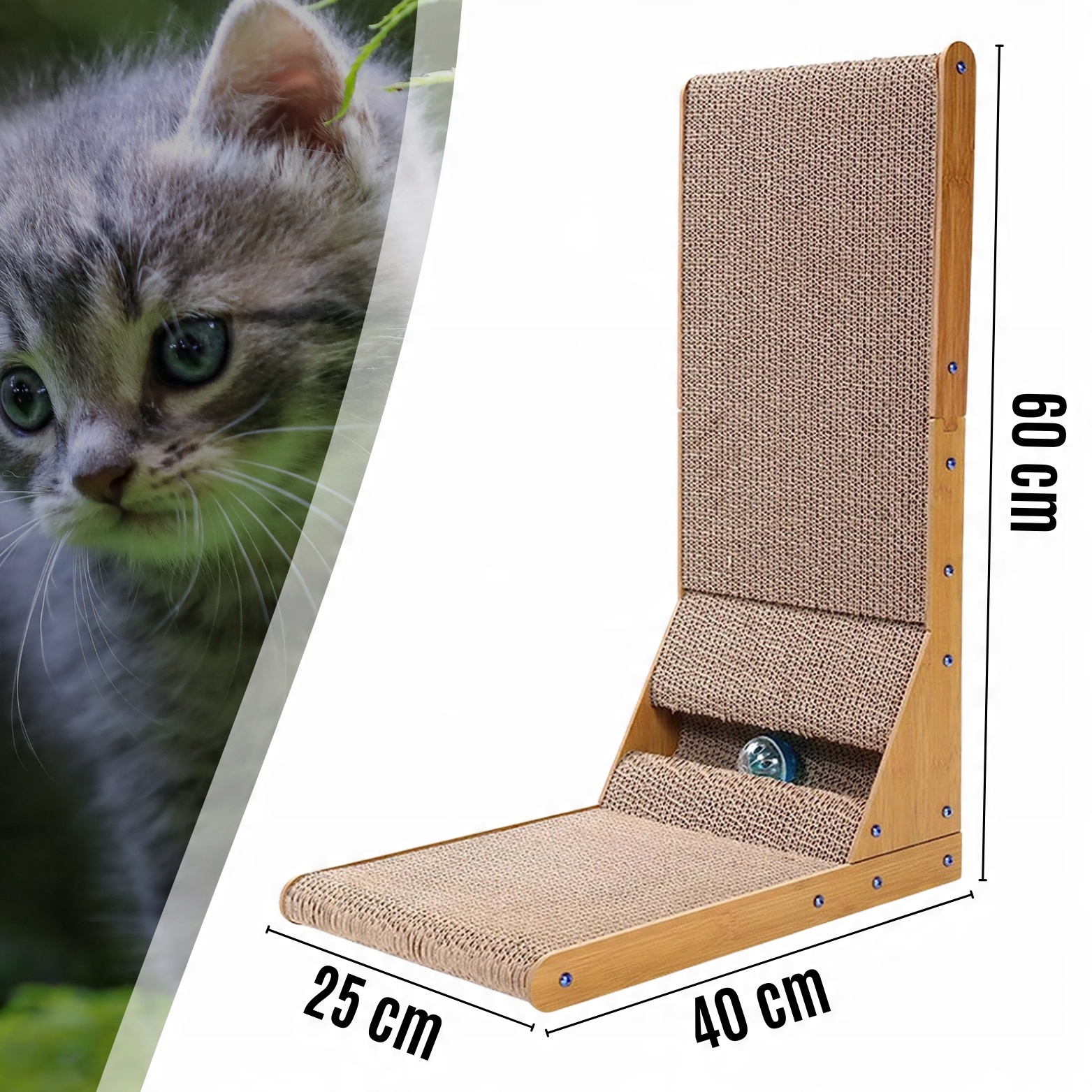Подаруйте своєму коту здорові кігті, розумову стимуляцію та веселощі в одному. Компактний дизайн економить простір, а легка збірка дозволяє ідеально вписатися в будь-який інтер'єр. Захищає ваші меблі, надаючи вашій кішці спеціальне місце, щоб почухатися, лазити та відпочити.