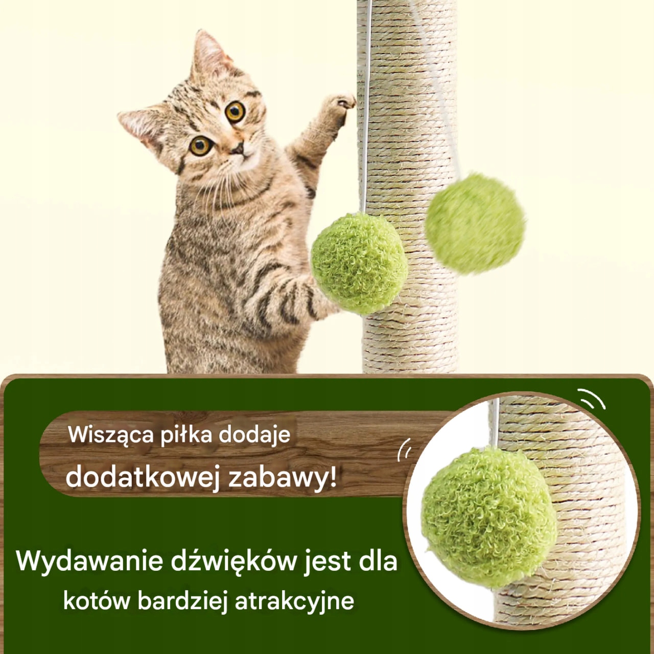 У верхній частині подряпин є набір кульок з коками, які є чудовою можливістю для активної забави для вашої кішки. Котячі лапи люблять ловити, переслідувати та захоплювати ці маленькі кульки, що не тільки забезпечує їм розваги, але й дозволяє їм підтримувати фізичну форму та розвивати спритність.
