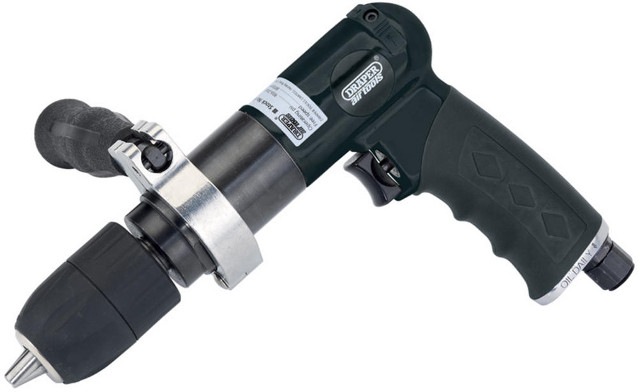 Draper Expert, вібраційна пневматична дриль із низьким рівнем шуму та м’якою рукояткою. Легка та міцна з реверсивною, змінною швидкістю та рукояткою типу Jacobs '. Бічна регульована ручка з поворотним отвором для подачі повітря, щоб уникнути заплутування шланга стисненого повітря. М’яка рукоятка для зручності користувача.