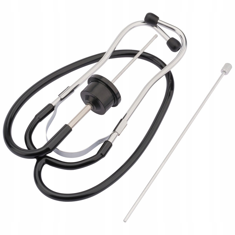 Призначений для виявлення несправностей у двигунах, підшипниках та інших рухомих частинах. Комплектується двома зондами довжиною 290 мм. Товар запакований.