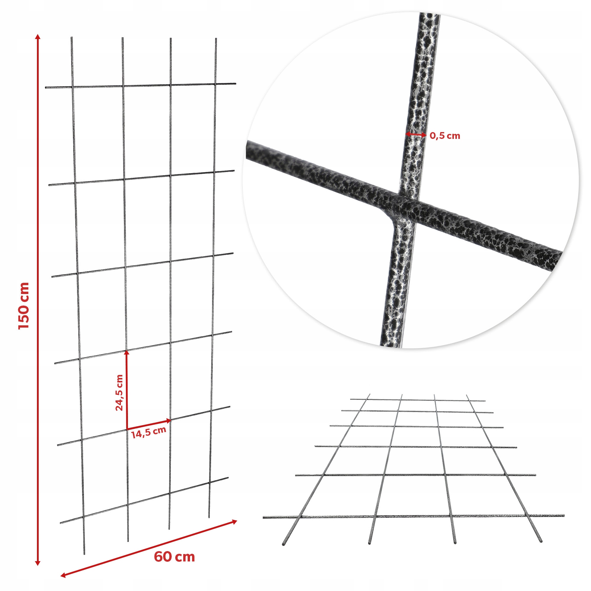 - Садова решітка виготовлена з міцного 5-мм дроту для забезпечення структурної жорсткості та довговічності, пофарбована поліестером порошкова фарба з УФ-фільтрами довго захищає решітки від корозії