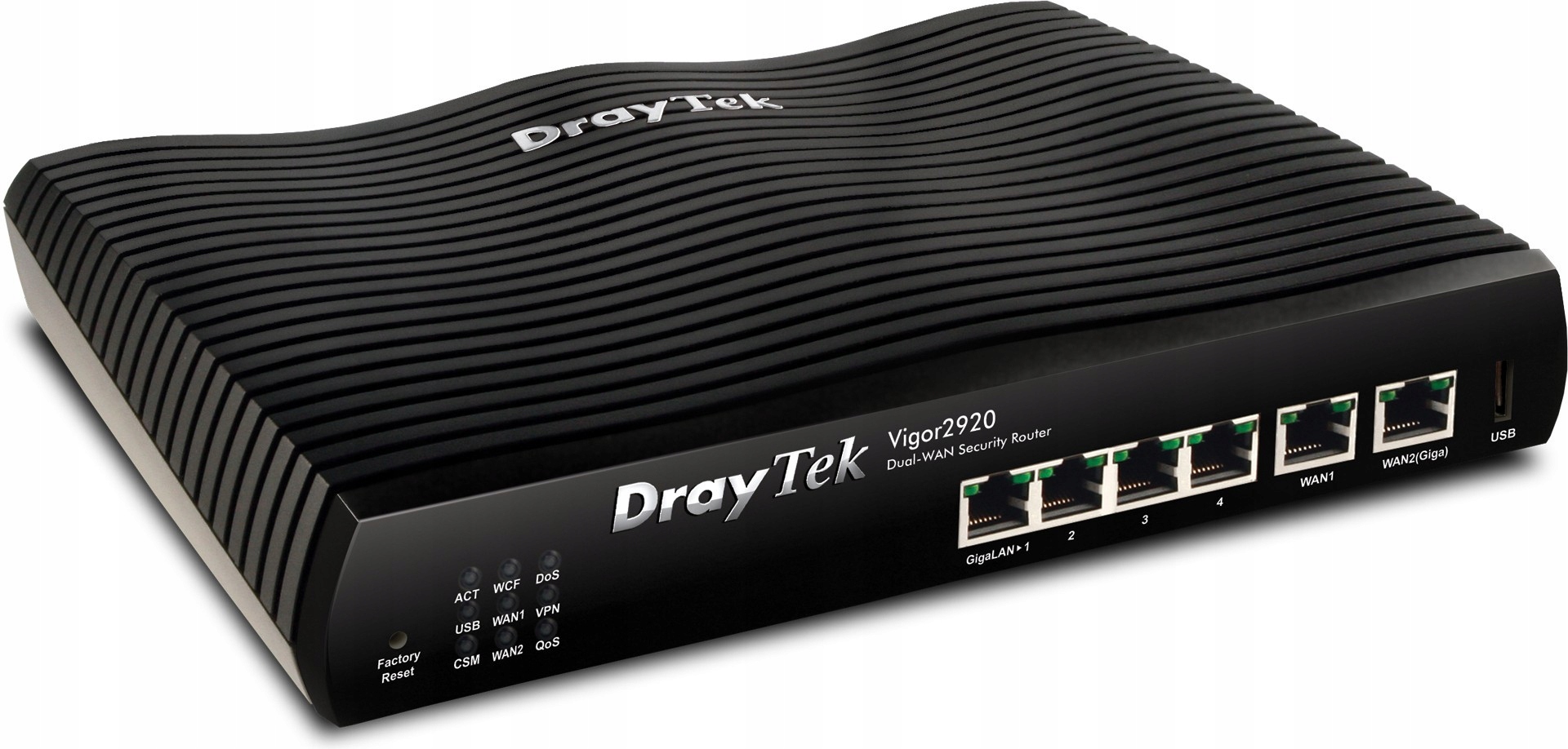 Vigor 2920 оснащений двома інтерфейсами WAN/Ethernet (10/100 /1000 Мбіт/с і 10/ 100 Мбіт/с) призначений для послуг DSL TP або кабельних мереж