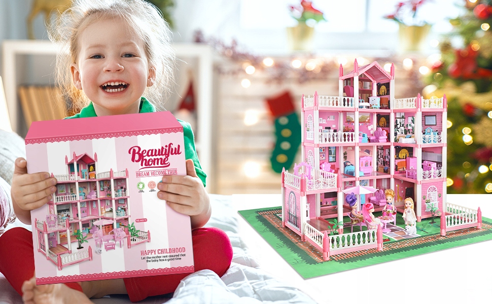 Цей рожевий ляльковий будинок смішний і має прекрасну упаковку, ідеальну як подарунок для дівчат на дні народження, Хеллоуїн, вечірки, Різдво та інші свята.