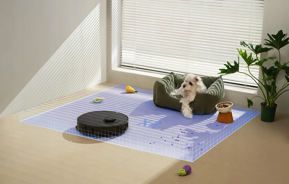 Робот розпізнає зони, пов’язані з присутністю домашніх тварин, і налаштовує метод прибирання, напр. шляхом повторення проходу в обраних місцях. Завдяки цьому він ефективно збирає волосся та залишки їжі, а регулювання кількості води під час миття сприяє швидкому висиханню підлоги. Все це підтримується тихою роботою та батьківським блокуванням, яке захищає налаштування від випадкових змін дітьми або тваринами.