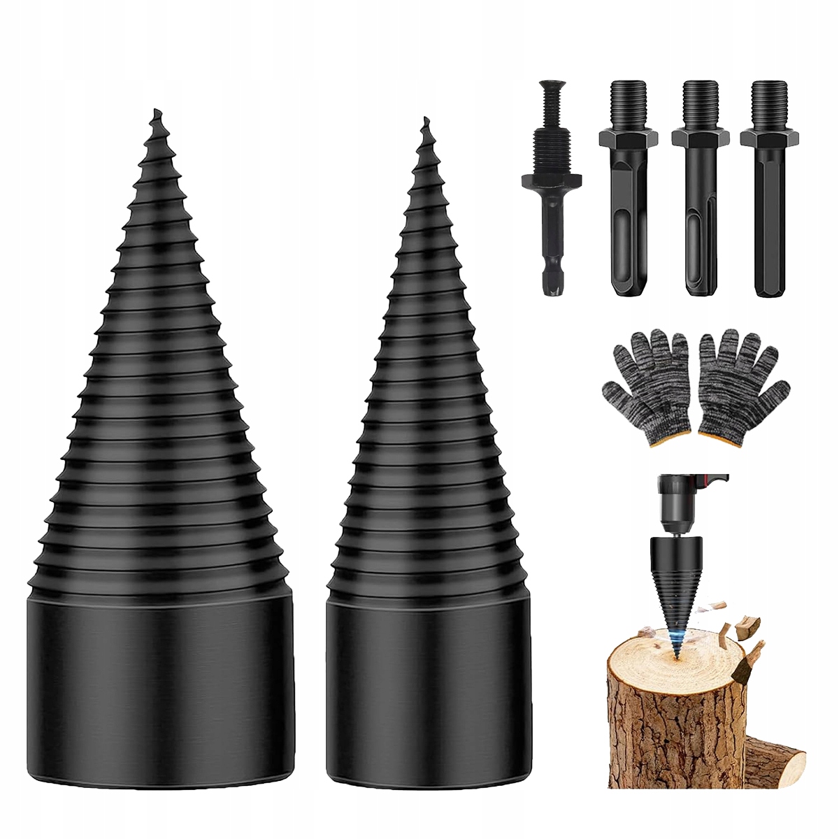 Конічний колокол має різьбовий дизайн. Це запобігає ковзанню і підвищує ефективність. Розколювання деревини підходить лише для колод меншого діаметру. Будьте обережні, використовуючи великі та важкі колоди.