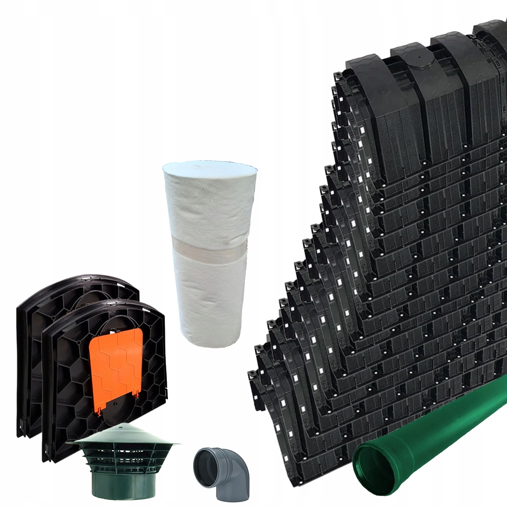Датні набори для дощової води та очищеної каналізації. Система складається з одного або багатьох модулів та двох закриття елементів, що характеризуються простотою вибору. Прокладка відбувається в одному шарі, в поздовжньому напрямку, що дозволяє легко адаптувати форму та здатність до місцевих умов. Відтік стічних вод здійснюється безпосередньо до землі через порожнє дно і прогалини на бічних стінах.
