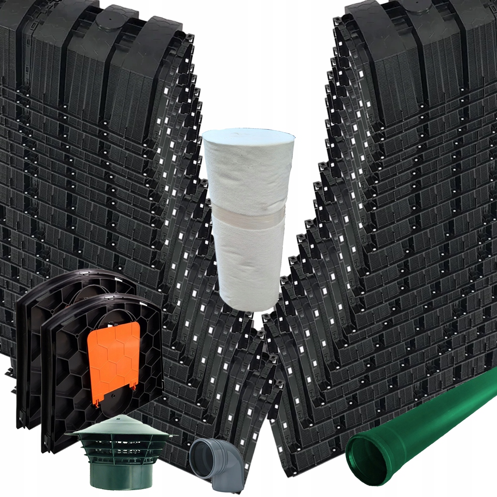 Налаштування для дощової води та очищеної стічної води. Система складається з одного або багатьох модулів та двох закриття елементів, що характеризуються простотою вибору. Прокладка відбувається в одному шарі, в поздовжньому напрямку, що дозволяє легко адаптувати форму та здатність до місцевих умов. Дренаж стічних вод відбувається безпосередньо до землі через порожнє дно і зазори на бічних стінах.