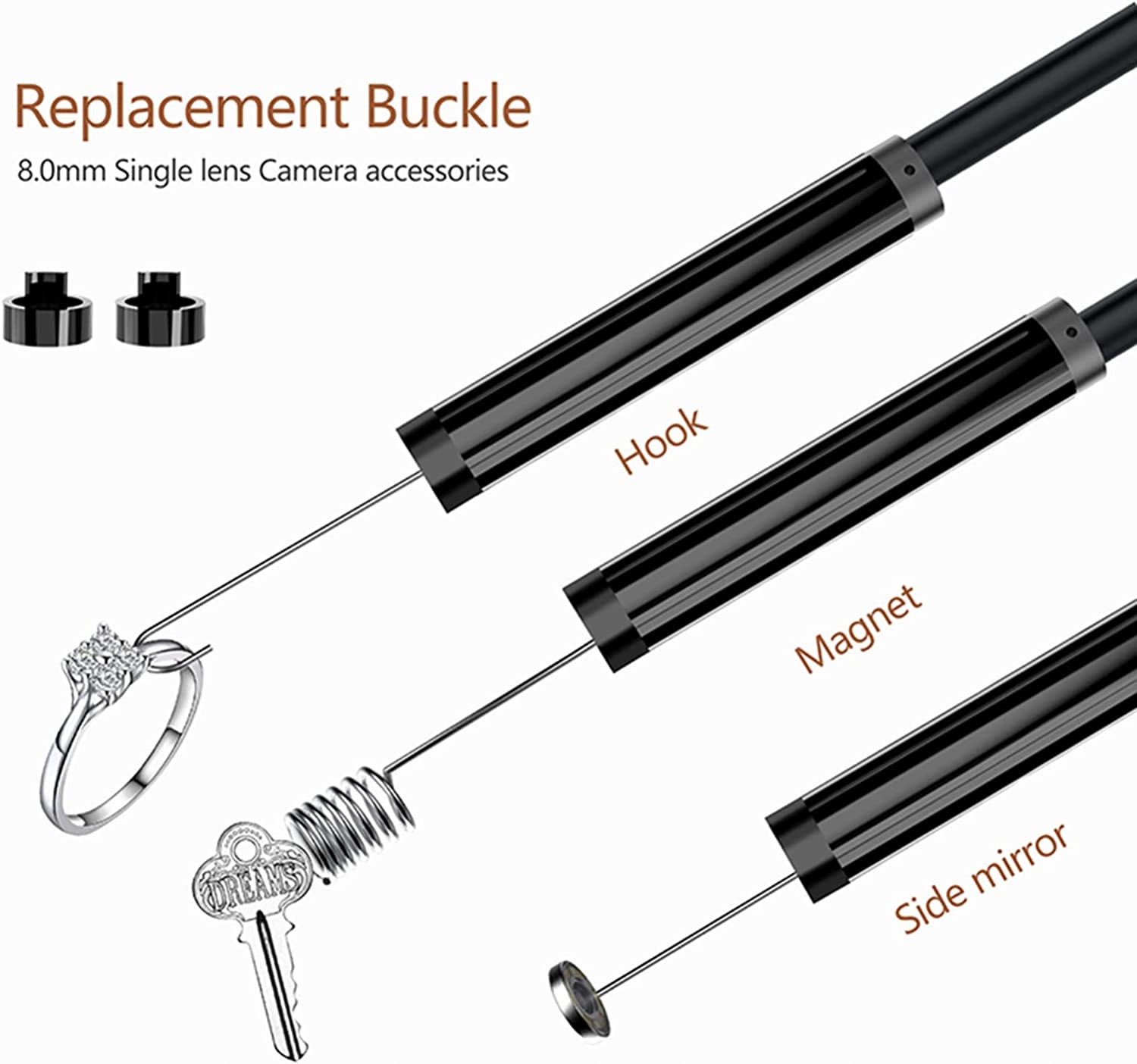 Зонд 8 мм, діаметр головки камери бороскопа 8 мм. Ендоскопічні камери дозволяють легко переглядати важкодоступні місця в будь-якому підземному тісному середовищі. Це незамінний професійний інструмент у житті для інспекційної камери Project Pipeline або датчика для огляду важкодоступних місць. Портативний ендоскоп має вбудовану конструкцію і живиться від батарейок типу АА. Проектуйте камеру перевірки трубопроводу або зонд камери, щоб побачити важкодоступні зони перевірки. Ручний ендоскоп має цільну конструкцію, а акумулятор високої ємності може безперервно використовуватися протягом 5 годин. Легкий у транспортуванні портативний промисловий ендоскопічний світильник. Водонепроникний зонд камери IP68 і маленькі інструменти дуже підходять для днопоглиблення та видалення сторонніх тіл у домашніх водопровідних трубах і туалетах. Широкий спектр застосувань. Водонепроникна мініатюрна ендоскопічна камера дуже підходить для водопровідних труб, труб для кондиціонування повітря, кабельних труб, промислових труб, археологічних відкриттів, перевірки та обслуговування циліндрів двигуна автомобіля в автомобільних майстернях тощо.