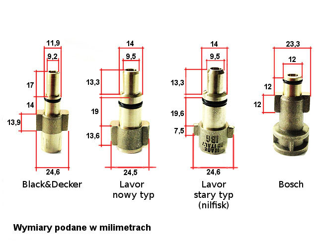 Ви можете підібрати адаптер для пральних машин: KARCHER HD/HDS, NILFISK, ALTO, KEW PARKSIDE, LAVOR NOWY/OLD TYP, KARCHER K2-K7, FAIP, BOSCH, PORTOTECNICA, BLACK&DECKER, KRANZLE.