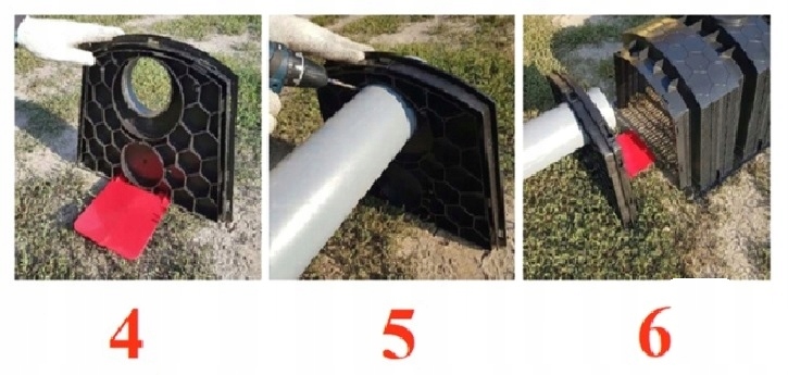 На початку тунелів монтується кришка з дефлектором. Призначення дефлектора - поглинати гідравлічний удар стічних вод або води, що подаються. При використанні під тунелями не відбувається вимивання ґрунту в місці надходження стічних вод чи води. На кінці тунельної різьби також встановлюємо кришку. Ліжко має бути обладнане припливом повітря на його кінці. Це можна зробити за допомогою одного з двох з’єднань, розташованих на верхній стінці кожного тунелю, або за допомогою верхнього з’єднання в закриваючій кришці.
