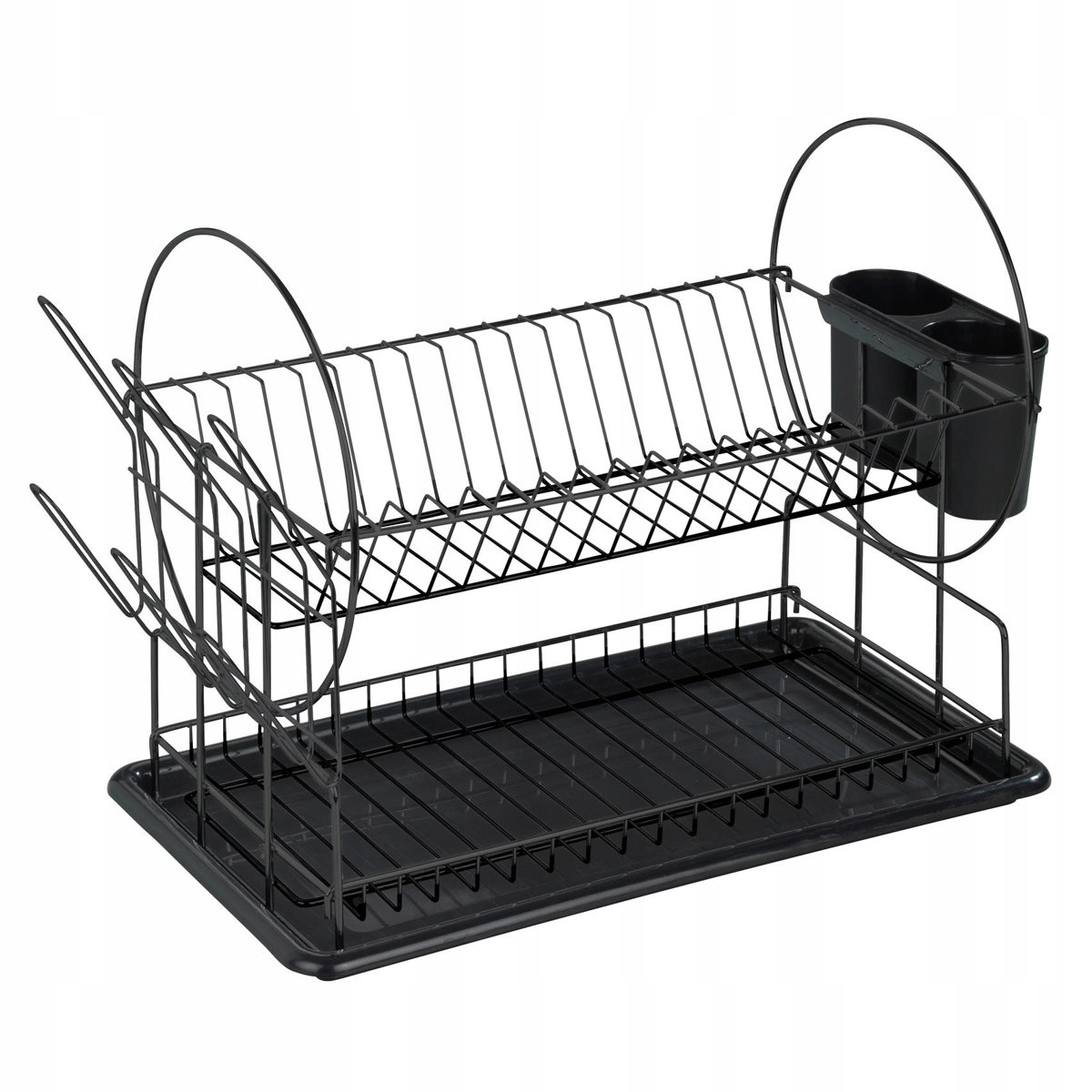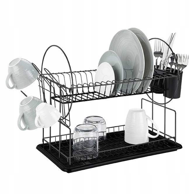 Практична сушарка для посуду Premium Duo неодмінно стане в нагоді на вашій домашній кухні! У вас є велика колекція унікального посуду, який не можна мити в посудомийній машині? Сушильна машина Premium Duo стане ідеальним рішенням! Виріб має два рівні, призначені для розміщення тарілок або мисок, бічні тримачі для чашок і склянок, а також додатково практичну кошик з двома відділеннями для столових приборів. b> Завдяки піддону для крапель, який ефективно утримує воду, кухонна стільниця залишається сухою. Premium Duo — це сушарка для посуду, призначена для тих, хто миє посуд вручну. Конструкція виготовлена з міцного металу стійкого до вологи, а піддон виготовлений з міцного чорного пластику. Виріб ідеально виглядатиме на вашій домашній кухні та відмінно виконуватиме свої функції під час щоденного використання.