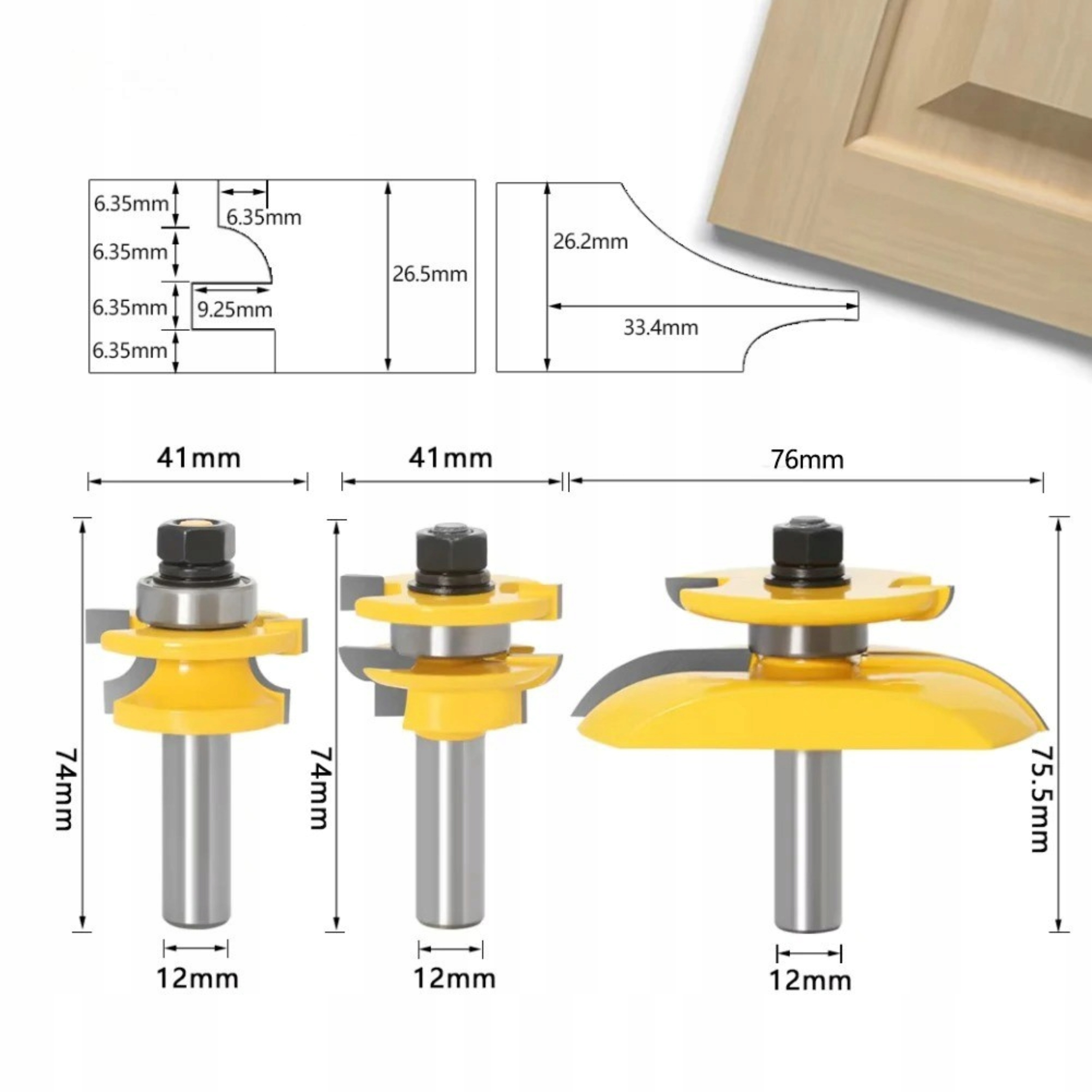 - Набір із 3 фрез для твердої деревини.