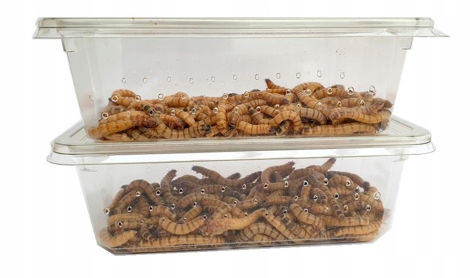 Предметом аукціону є упаковка личинок деревоїдів (Zophobas morio) розміром від 40 мм. Упаковка містить 100 мл комах. Годують комах пшеничними висівками, спеціально приготовленою кормовою сумішшю та свіжими фруктами та овочами. Комахи походять від професійного розведення, коли ви купуєте у нас, ви купуєте личинок деревоїдів, ви купуєте безпосередньо у заводчика. З цієї причини ми можемо запропонувати харчові комахи найвищої якості за розумною ціною.