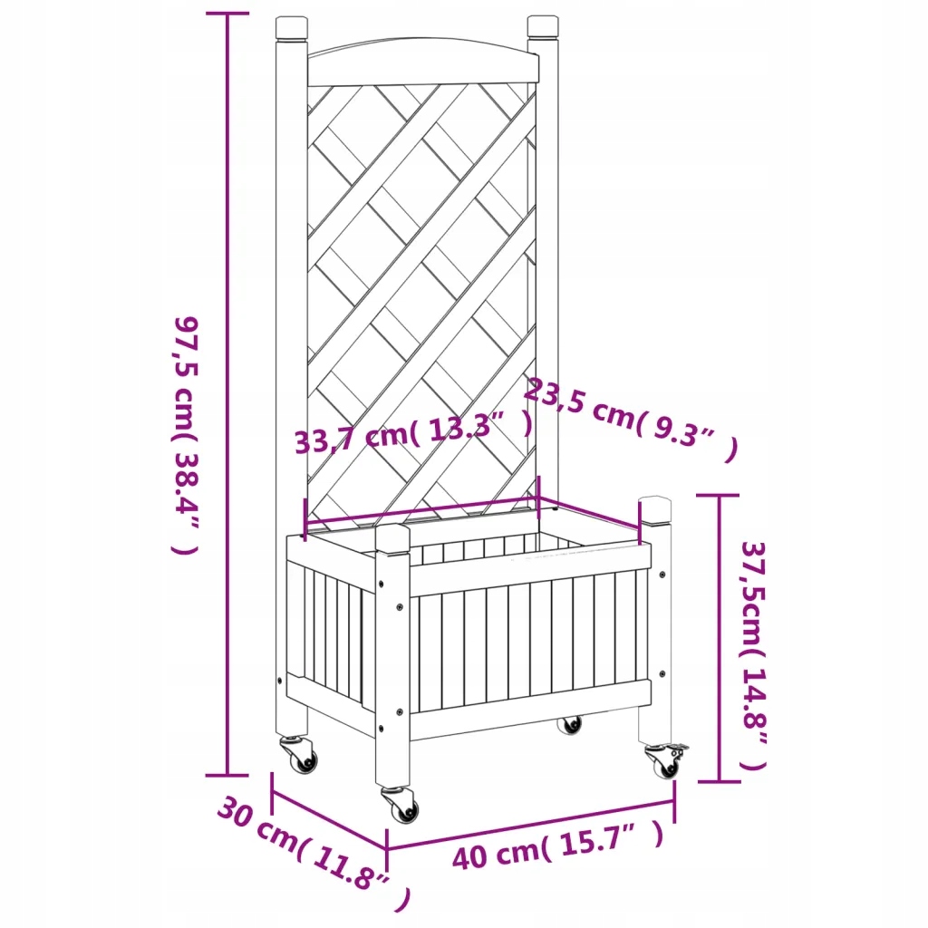 Drewniana donica z trejażem i kółkami, 40x30x97,5 cm, brązowa