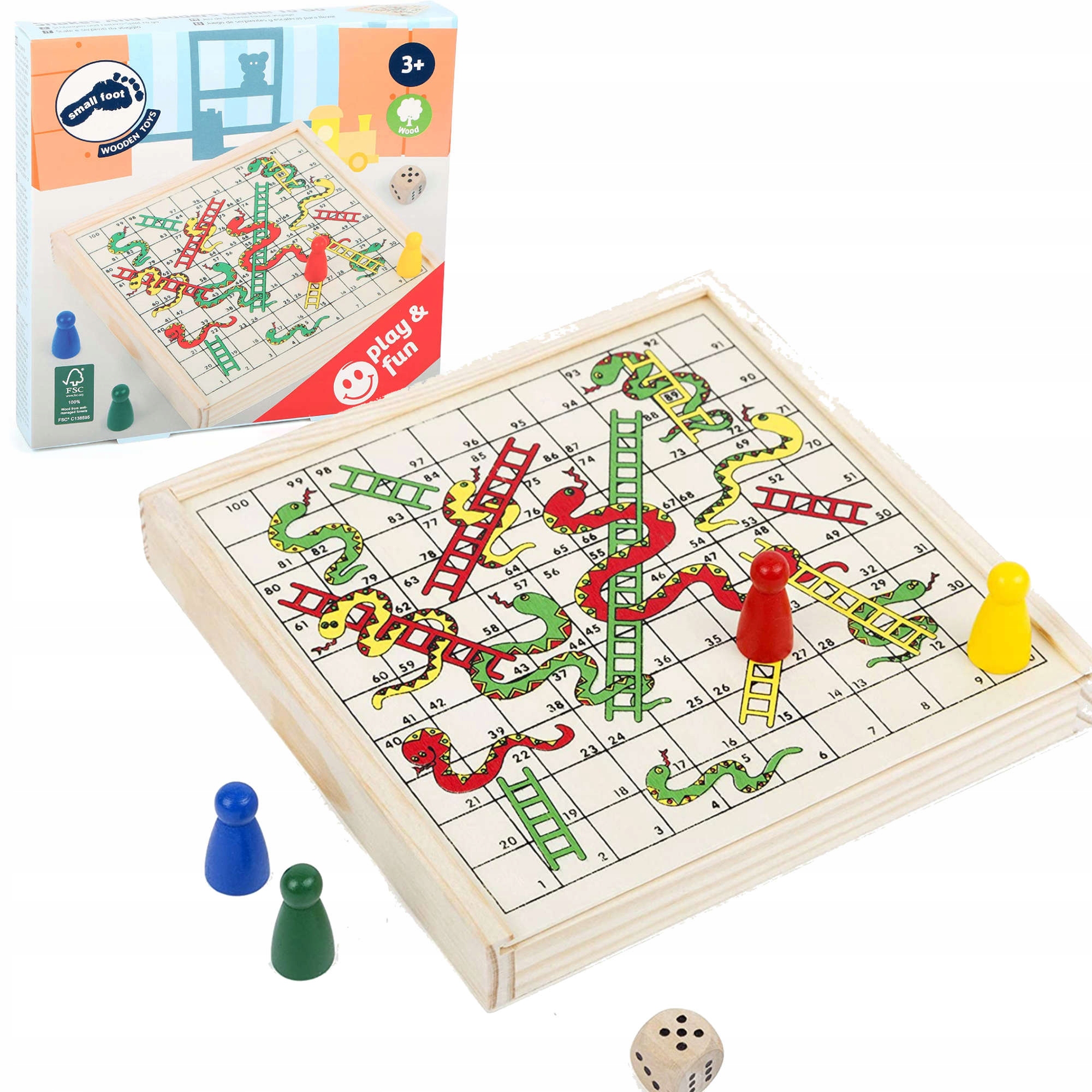 DREWNIANA GRA PLANSZOWA DLA DZIECI WĘŻE I DRABINY