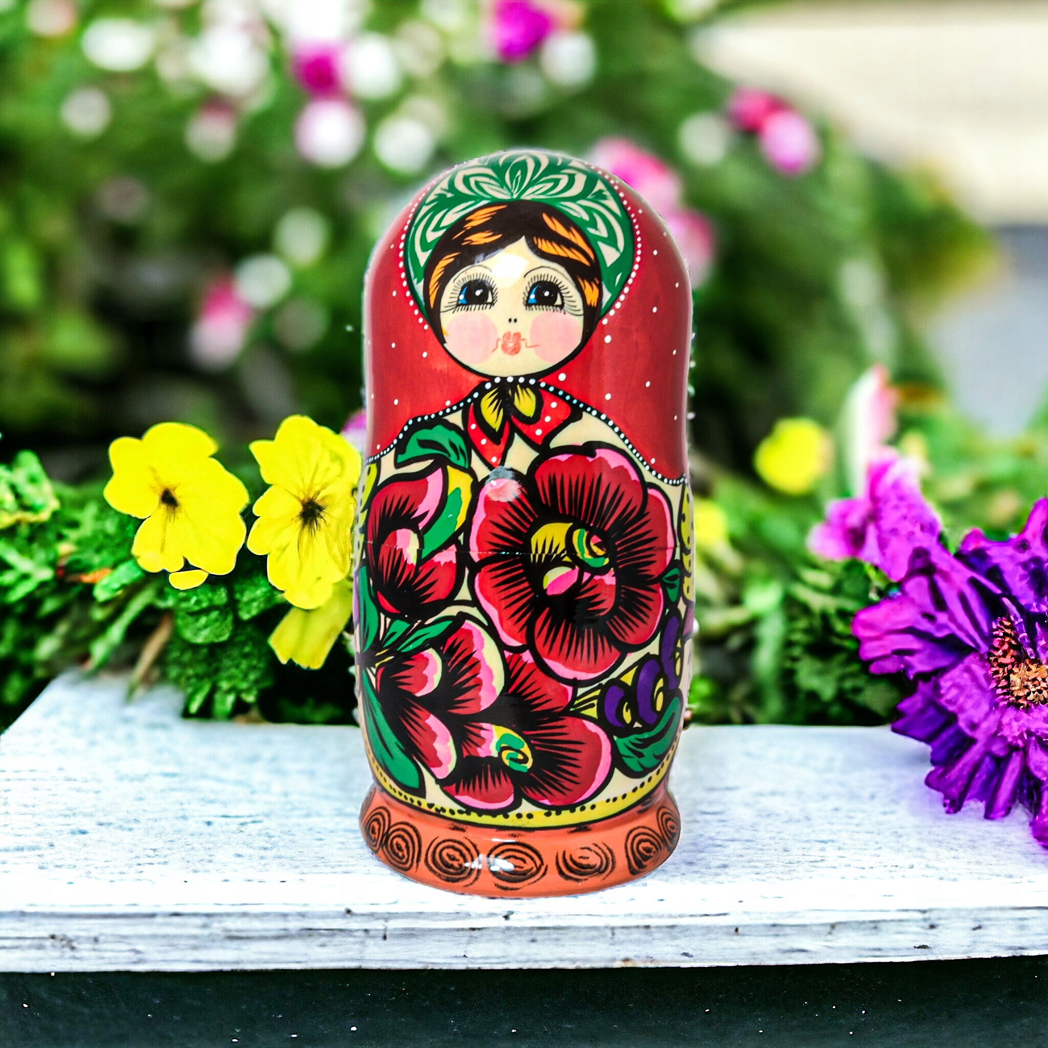 Drewniana Lalka MATRIOSZKA BABUSZKA 7w1 20 cm recznie malowana chusta