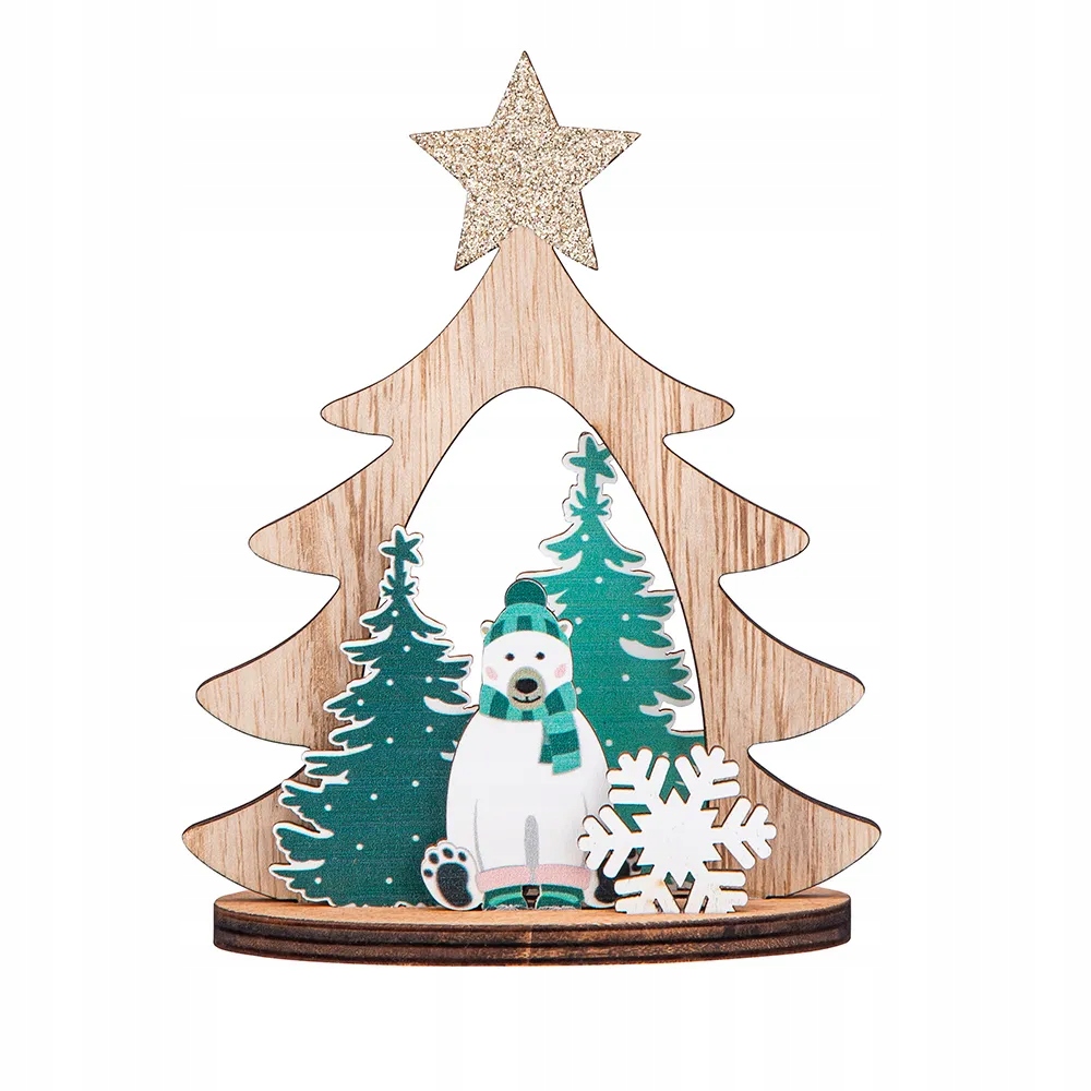 DREWNIANA OZDOBA ŚWIĄTECZNA Figurka Choinka z misiem Boże Narodzenie