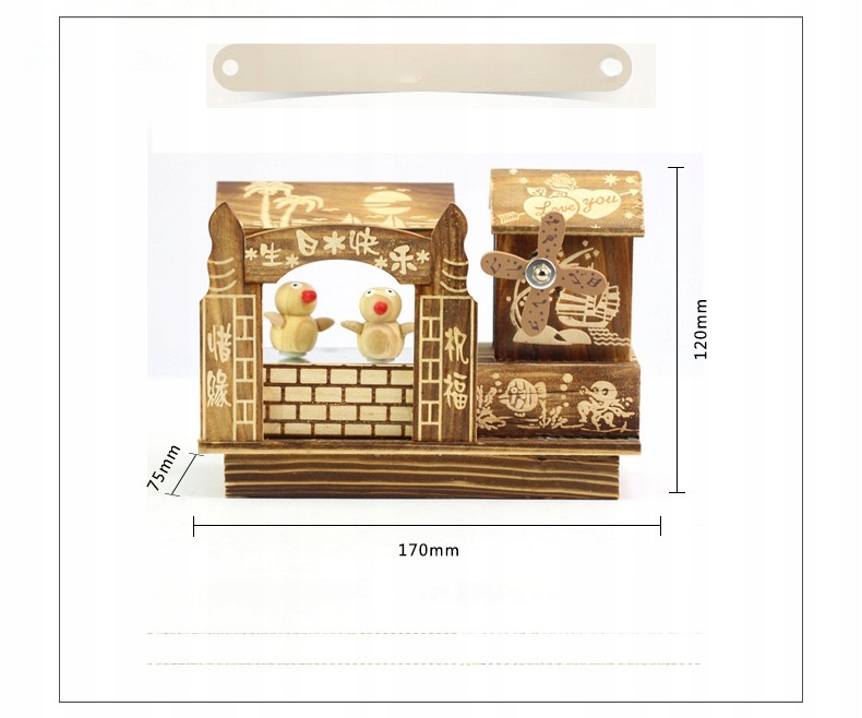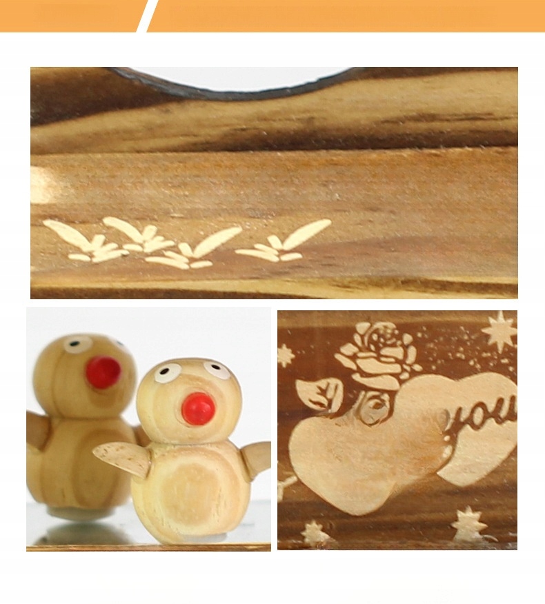 DREWNIANA Pozytywka TAŃCZĄCE PTAKI O WYMIARACH 17 X 75 CM