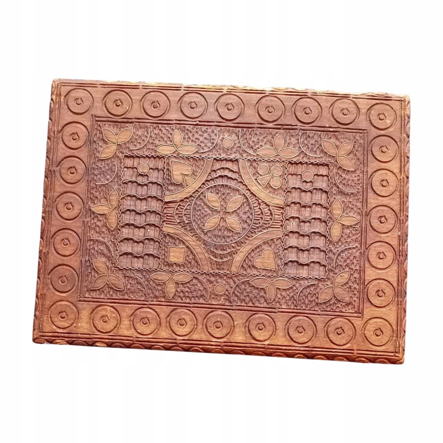 Просматривая «Drewniana rzeźbiona szkatułka na dwie talie kart. Cepelia, PRL.», вы можете быть уверены, что данный товар из каталога «Ящики и шкатулки» будет доставлен из Польши и проверен на целостность. В цене товара, указанной на сайте, учтена доставка из Польши. Внимание!!! Товары для Евросоюза, согласно законодательству стран Евросоюза, могут отличаться упаковкой или наполнением.